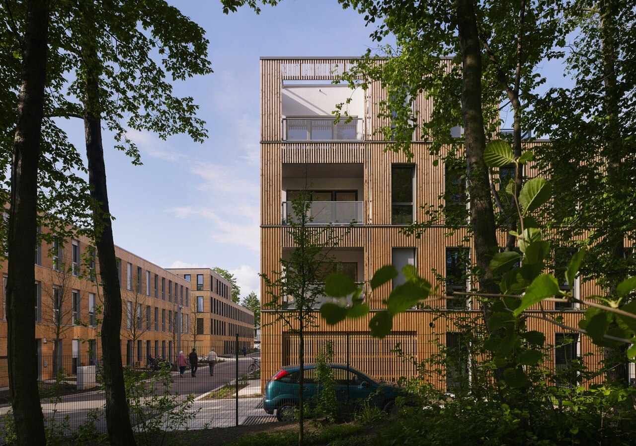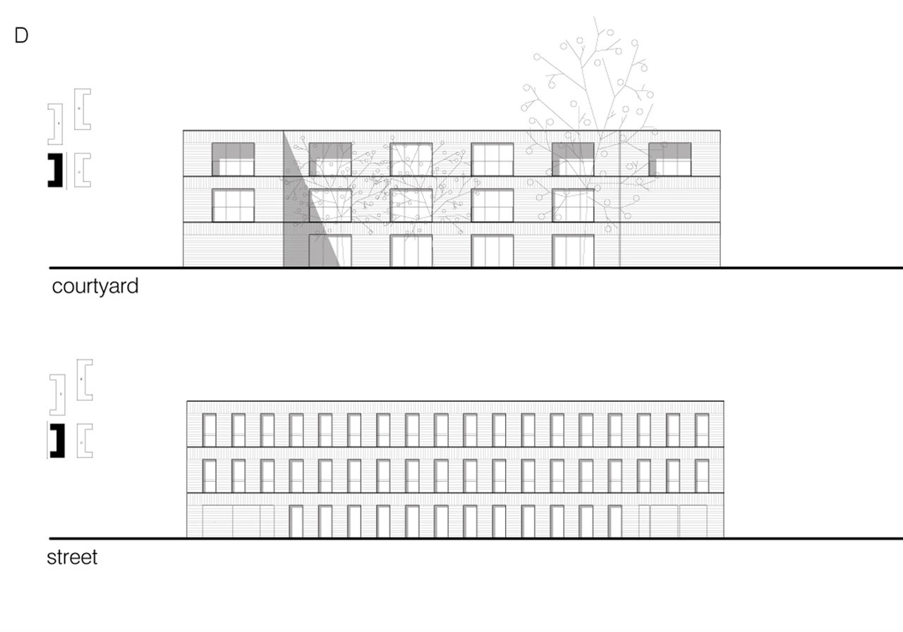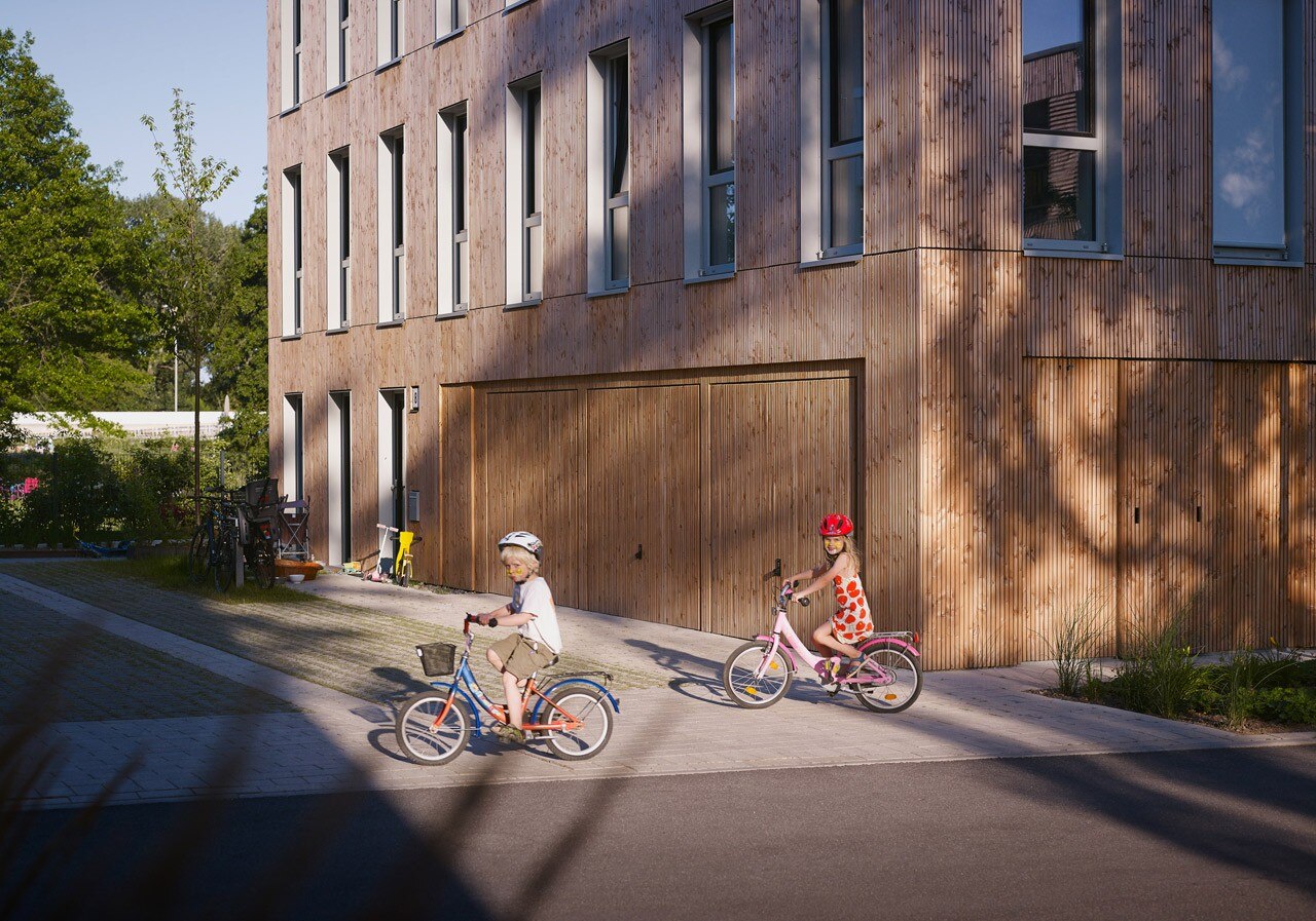 All'interno dei blocchi, le 33 unità abitative sono di due tipi: in linea e multilivello. Le 13 unità multilivello occupano 1 o 2 piani e hanno una superficie di 50-90 mq. Ciascuna di esse ha accesso diretto a un giardino con terrazza o a una loggia. Le residenze al piano terra sono completamente accessibili e utilizzabili dalle persone con mobilità ridotta. Le 20 villette a schiera sono disposte su tre piani, godono di un giardino privato con terrazza e del doppio affaccio sulla strada e sul cortile. Orientamento e superficie variano a seconda del loro posizionamento all'interno del blocco. Su richiesta dei residenti sono stati integrati spazi di lavoro quali uffici, studi di progettazione grafica, studi medici e altro. Altri elementi spaziali, come il posizionamento del vano scala, l'accesso alla cucina, il numero di camere e bagni sono stati scelti direttamente dai residenti.