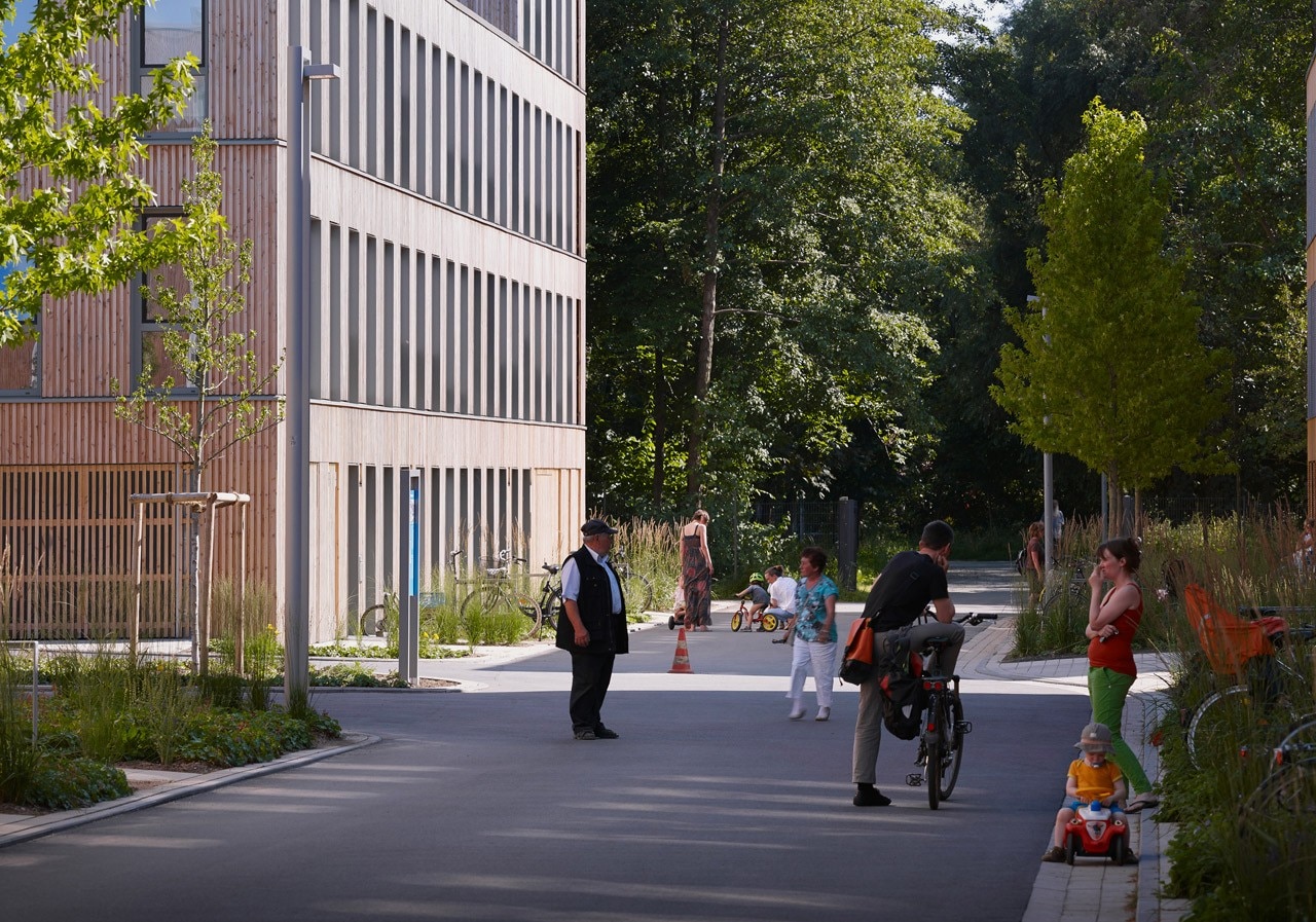 Il Building 4 contiene un impianto di riscaldamento comune che produce il calore distribuito poi agli altri edifici tramite un sistema sotterraneo. Il riscaldamento a cogenerazione (energia elettrica e calore per acqua calda e riscaldamento) è di tipo Zuhause – Kraftwerk Lichtblick. Ogni unità è dotata di un sistema di ventilazione a doppio flusso con recupero di calore individuale. Nei cortili è inoltre previsto un sistema di raccolta dell'acqua piovana.
