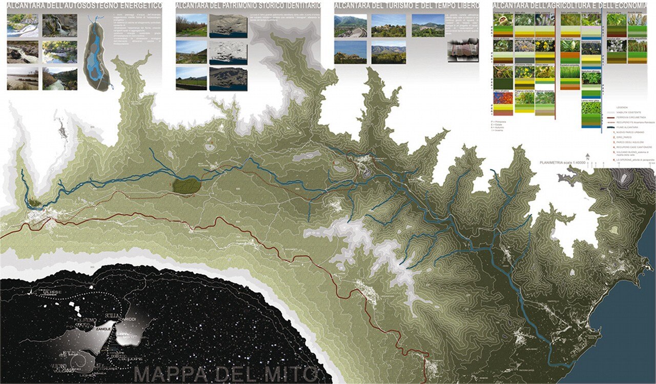 Attento alle preesistenze storiche e al loro recupero attraverso interventi minimi, così come al recupero delle vie d'acqua trasversali al corso principale del fiume, è il progetto di Tamà e Dall'Ara. Più orientato verso il dettaglio architettonico, il progetto di Caporali e Alvarez, è caratterizzato (unico dei 5) dalla proposta di rimettere in funzione la ferrovia esistente lungo il percorso del fiume e dalla realizzazione di una serie di stazioni minime caratterizzate da una parete con gabbionata in pietra lavica. Con una prospettiva di più vasto respiro, il progetto di Fiammingo e Scarpinato gioca invece sulla volontà di riconnettere il territorio dell'Alcantara al paesaggio dell'Etna, delle isole Eolie e dello Stretto di Messina.