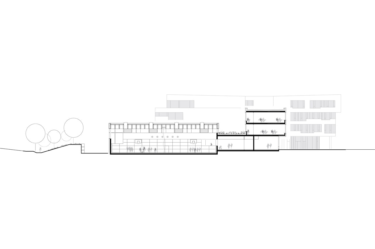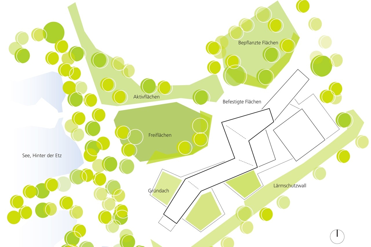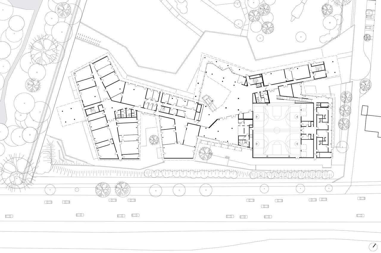 Per ottimizzare l’apporto di luce diurna, le aule affacciate a nord utilizzano un sistema di direzionamento della luce che consente di ricevere illuminazione dal corridoio a sud, riducendo così la necessità di luce artificiale.