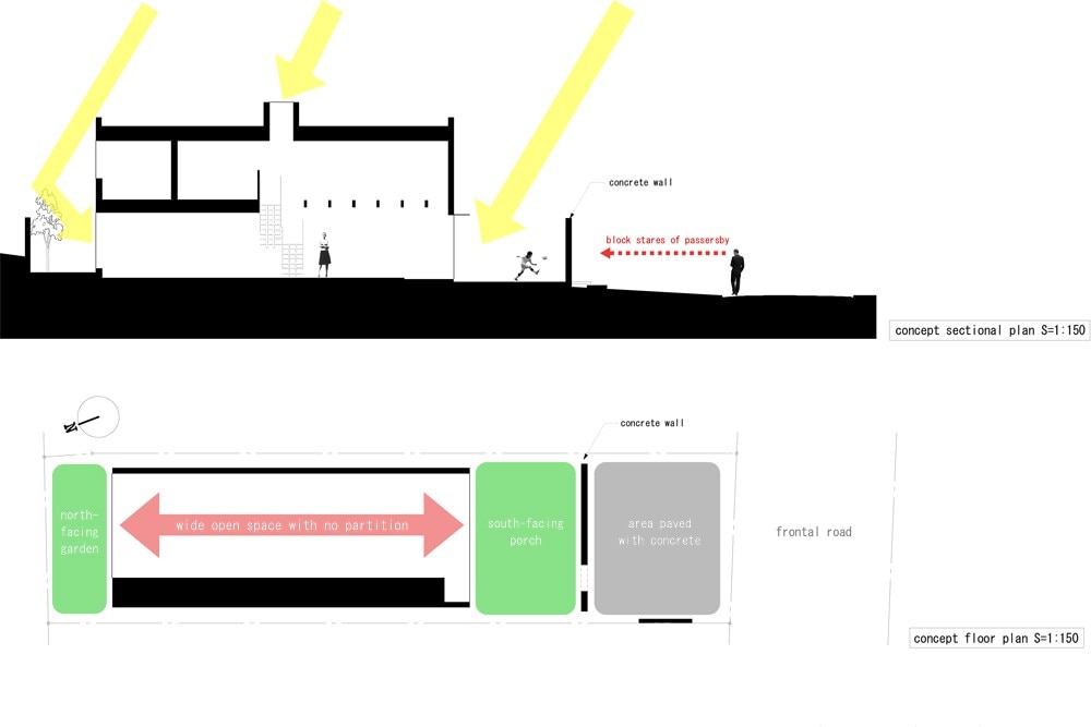 L’architetto giapponese Nobuo Araki ha progettato, nel quartiere di Tokyo Setagaya, una residenza fronteggiata da un muro autoportante in cemento che garantisce privacy sufficiente al fronte vetrato mantenendo un senso di apertura.