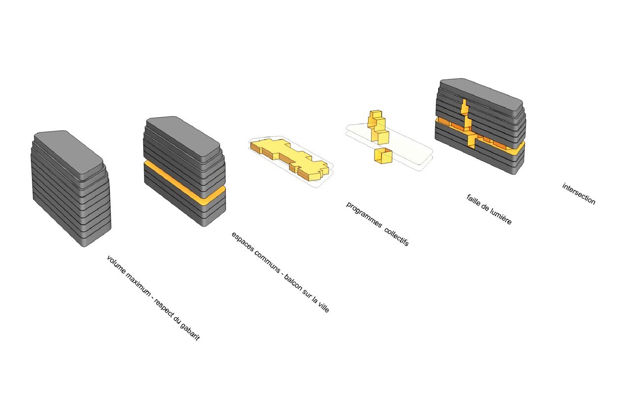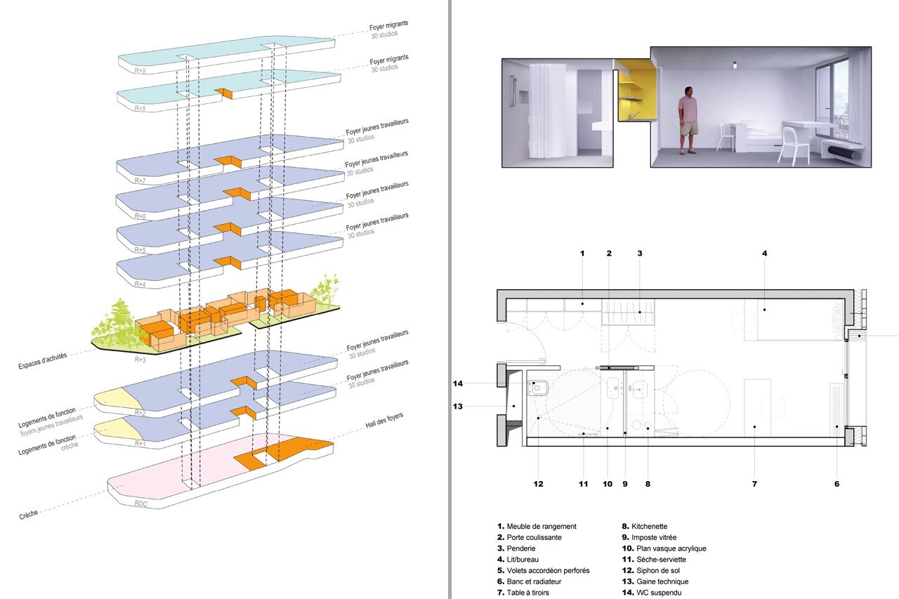 Chartier-Dalix, Avenier Cornejo Architectes, Lila, Foyer de jeunes travailleurs et crèche, Parigi, Francia. Concept