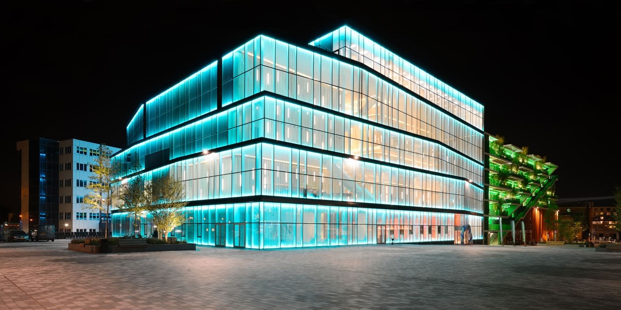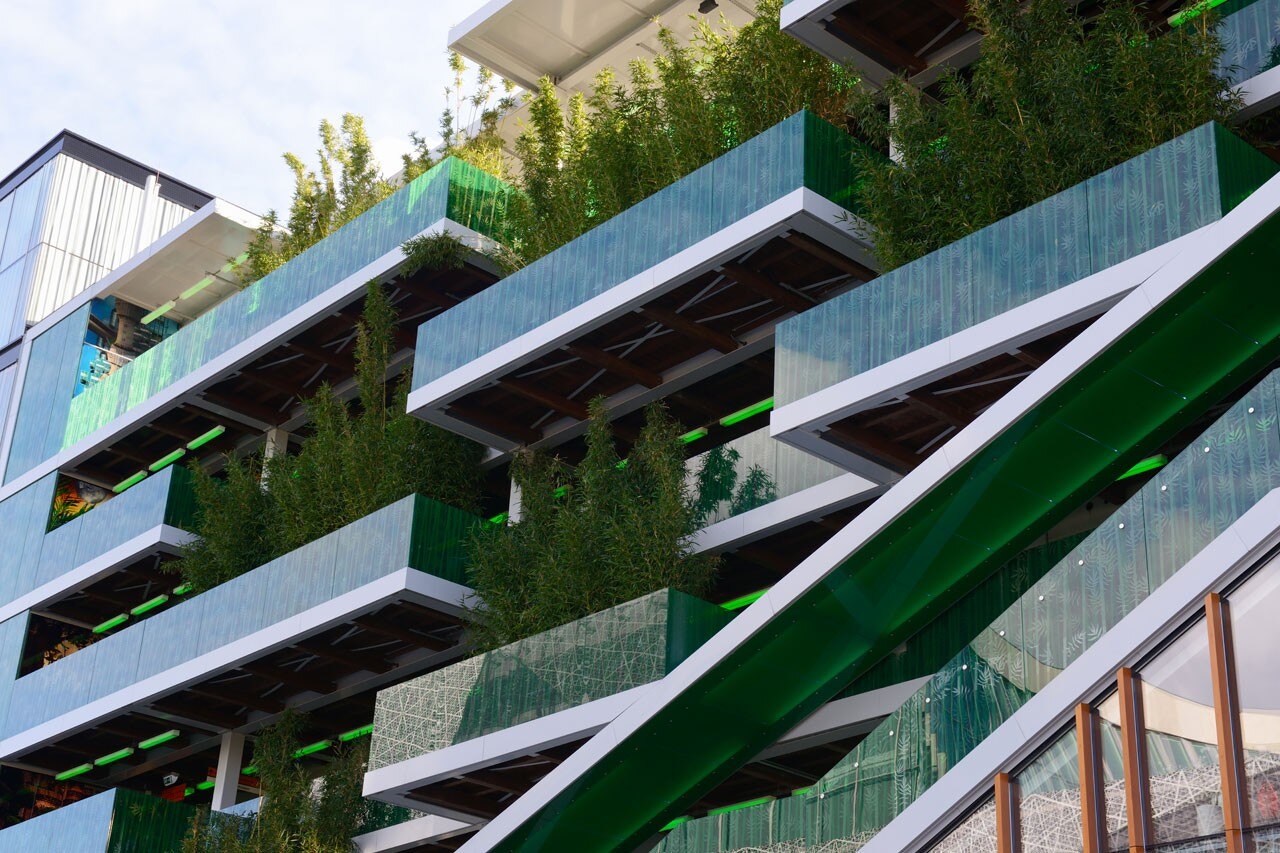 Al termine dei lavori di ristrutturazione del centro cittadino quasi tutte le auto saranno parcheggiate sotto terra con l’eccezione del parcheggio multipiano accanto al Kunstcluster, progettato per risultare neutrale in termini di emissioni di carbonio sia nella fase di edificazione che durante l’operatività. La facciata del garage sul lato della piazza, con uno spessore di quattro metri, comprende una scalinata che sale attraverso una piantagione di bambù alta sei metri. Le stampe sulle balaustre e le altre superfici vetrate riflettono graficamente l’immagine del bambù, mentre il piano terreno accoglie uno spazio commerciale.