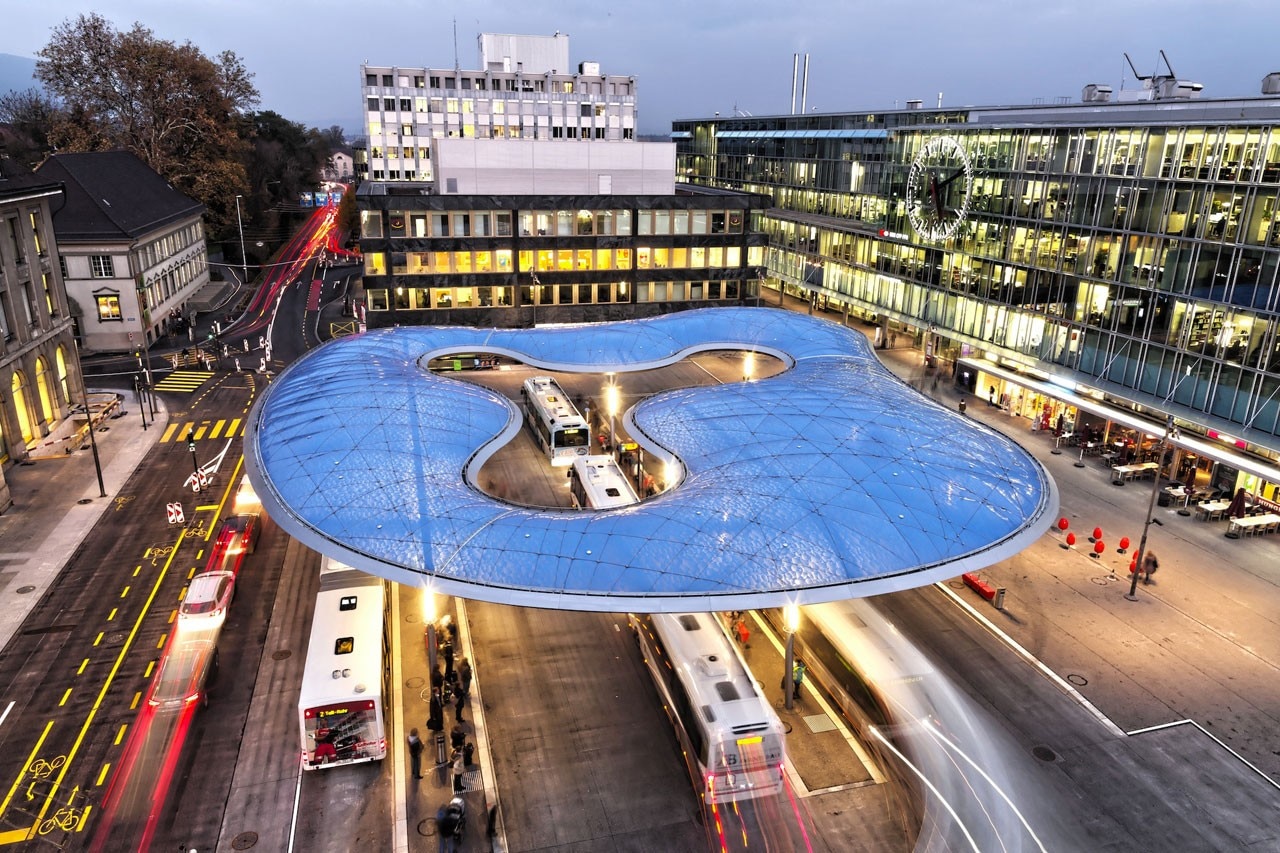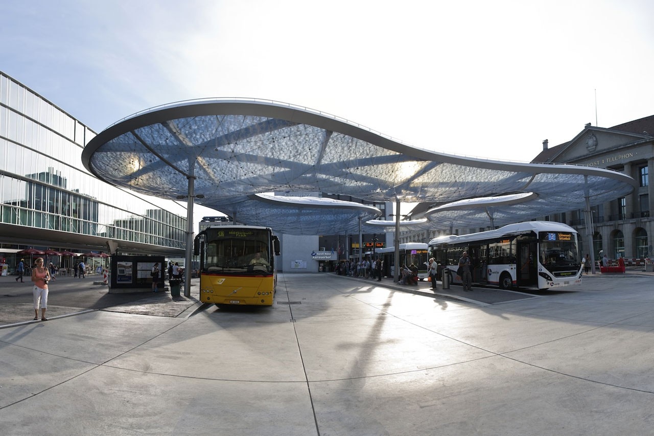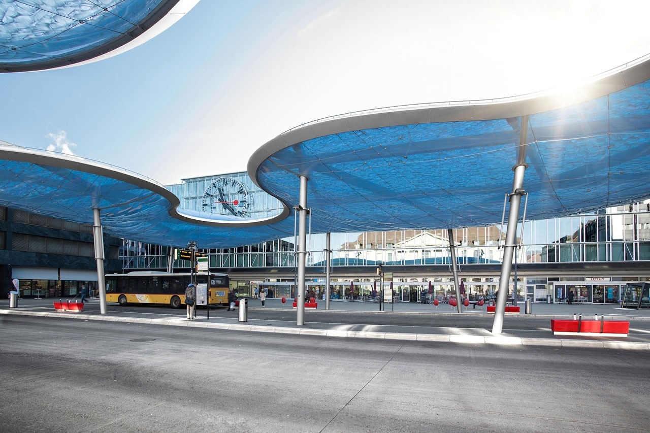 Vehovar & Jauslin Architektur AG, copertura della stazione degli autobus e piazzale della stazione, Aarau, Svizzera