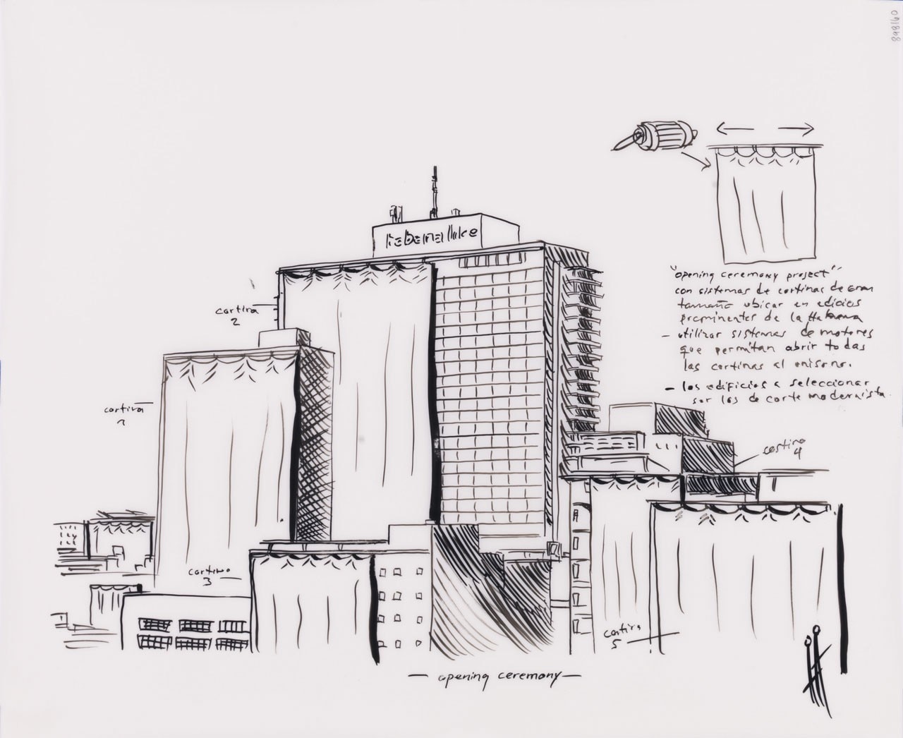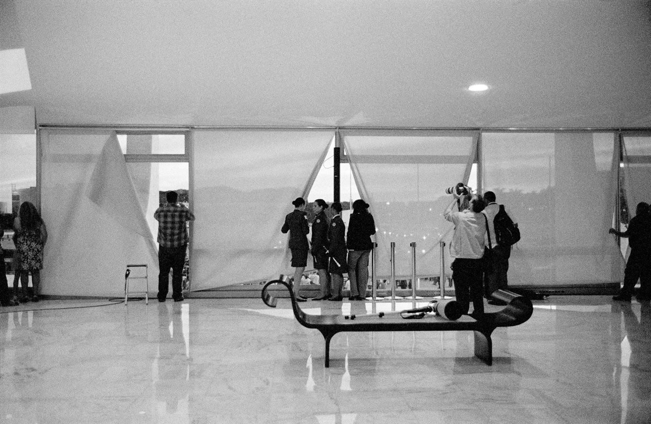 La mostra si apre con una serie di fotografie di Alberto Baraya che introducono il visitatore al tema attraverso il ritratto di alcune tra le icone architettoniche che hanno segnato il paesaggio urbano sudamericano dal dopoguerra e, tra queste, le opere di Oscar Niemeyer per Brasilia. Ed è proprio con una fotografia del funerale di Niemeyer nel 2012 – una cerimonia spiata da dietro una tenda-sipario – che si conclude l’esposizione. A indicare, nella scomparsa di colui che aleggia come spettro sulle opere esposte, una speranza per poter davvero andare “Beyond the Supersquare”.