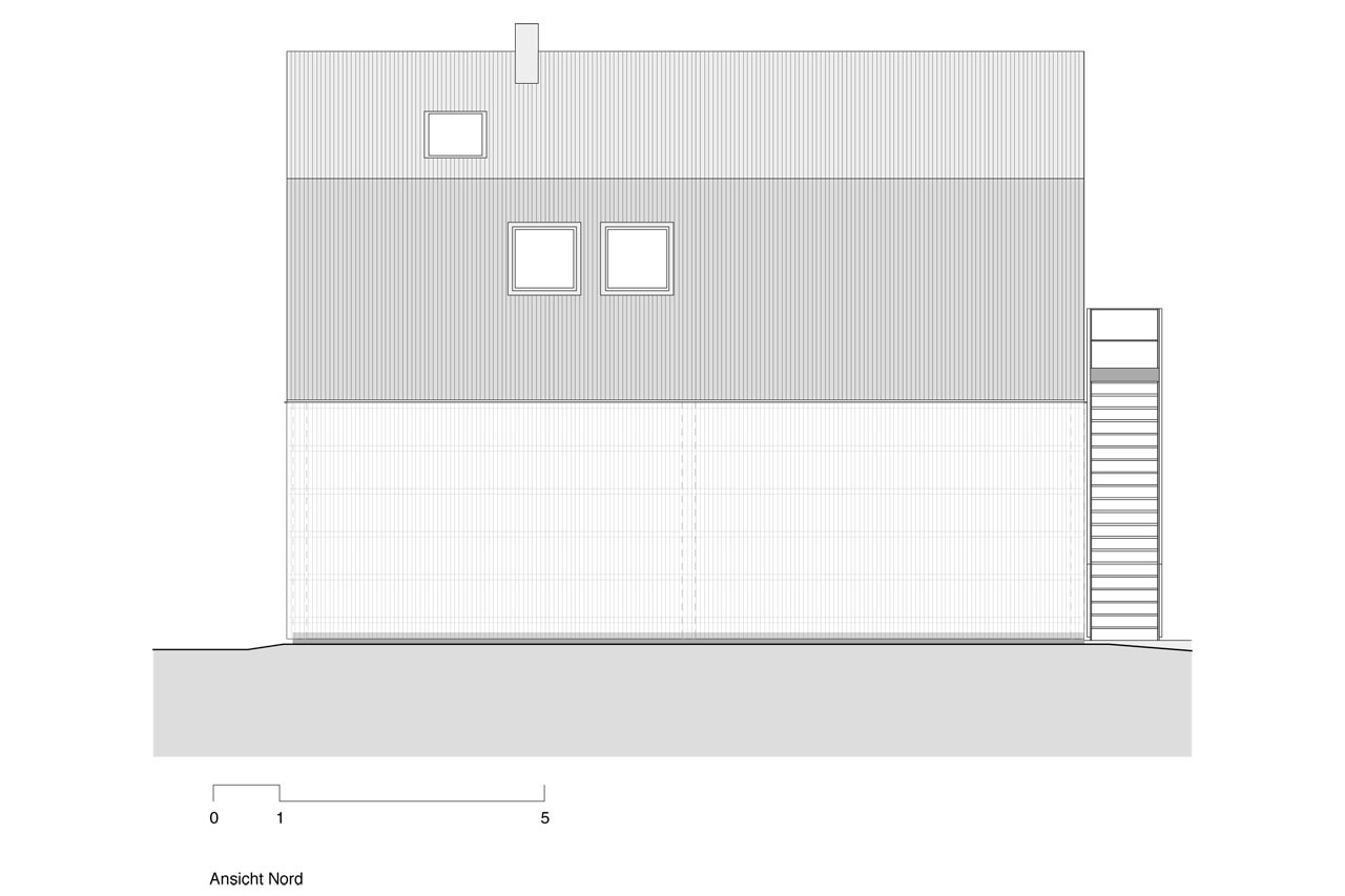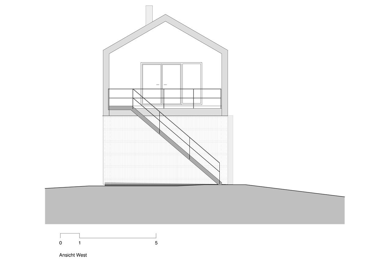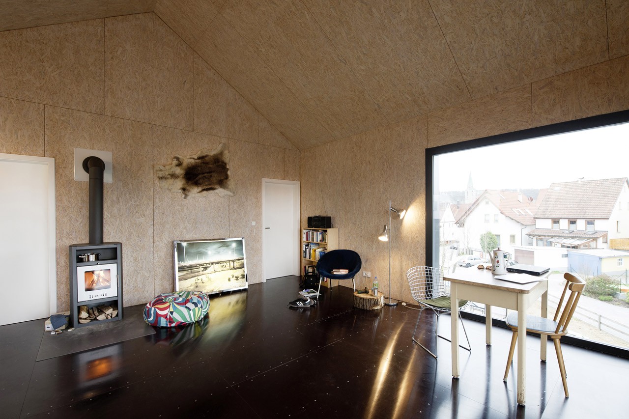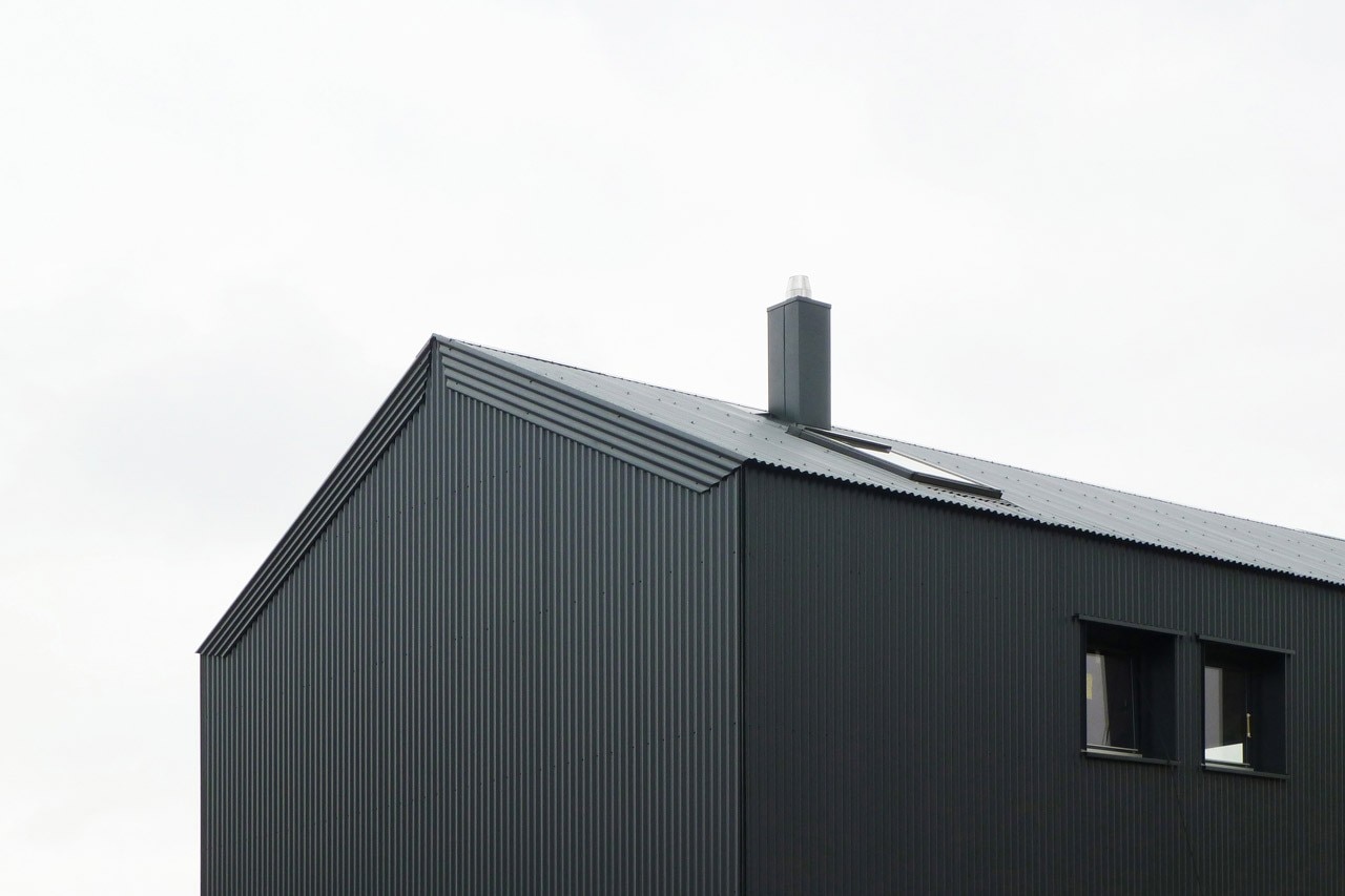 Lo spazio abitativo si presenta, con la sua facciata color antracite, come un volume monolitico. La disposizione delle finestre e un’ampia loggia orientata a sud permettono di godere della vista sul paesaggio circostante. I materiali scelti per la facciata e gli interni sottolineano il concetto di design pragmatico e ridotto: una casa che si avvicina più alla tipologia della residenza colonica o della fattoria piuttosto che a quella dell’abitazione tradizionale.