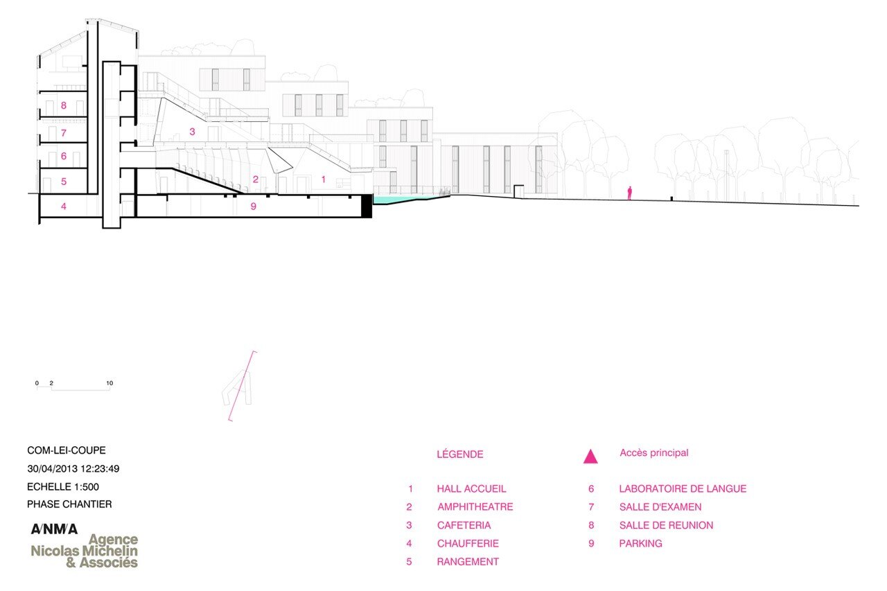 ANMA, Agence Nicolas Michelin et Associés, École supérieure d’ingénieurs de Bretagne Sud, Lorient, Francia. Sezione