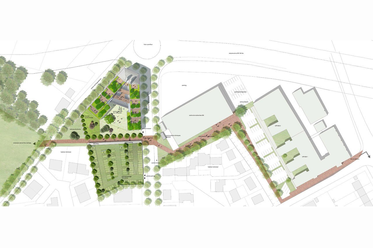ANMA, Agence Nicolas Michelin et Associés, École supérieure d’ingénieurs de Bretagne Sud, Lorient, Francia. Schizzo di progetto