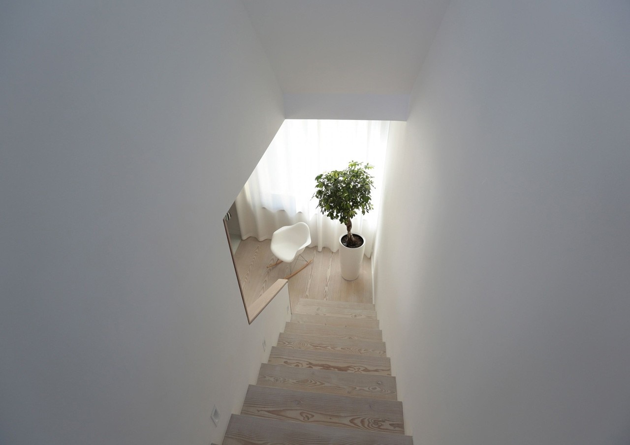 Le pareti bianche, a grana fine e senza intonaco (ETICS) annullano i confini tra spazi interni ed esterni e lasciano che i singoli edifici sembrano elementari, astratti e scultorei attraverso gli spigoli degli angoli di costruzione (tavole Sto impermeabili come copertura).