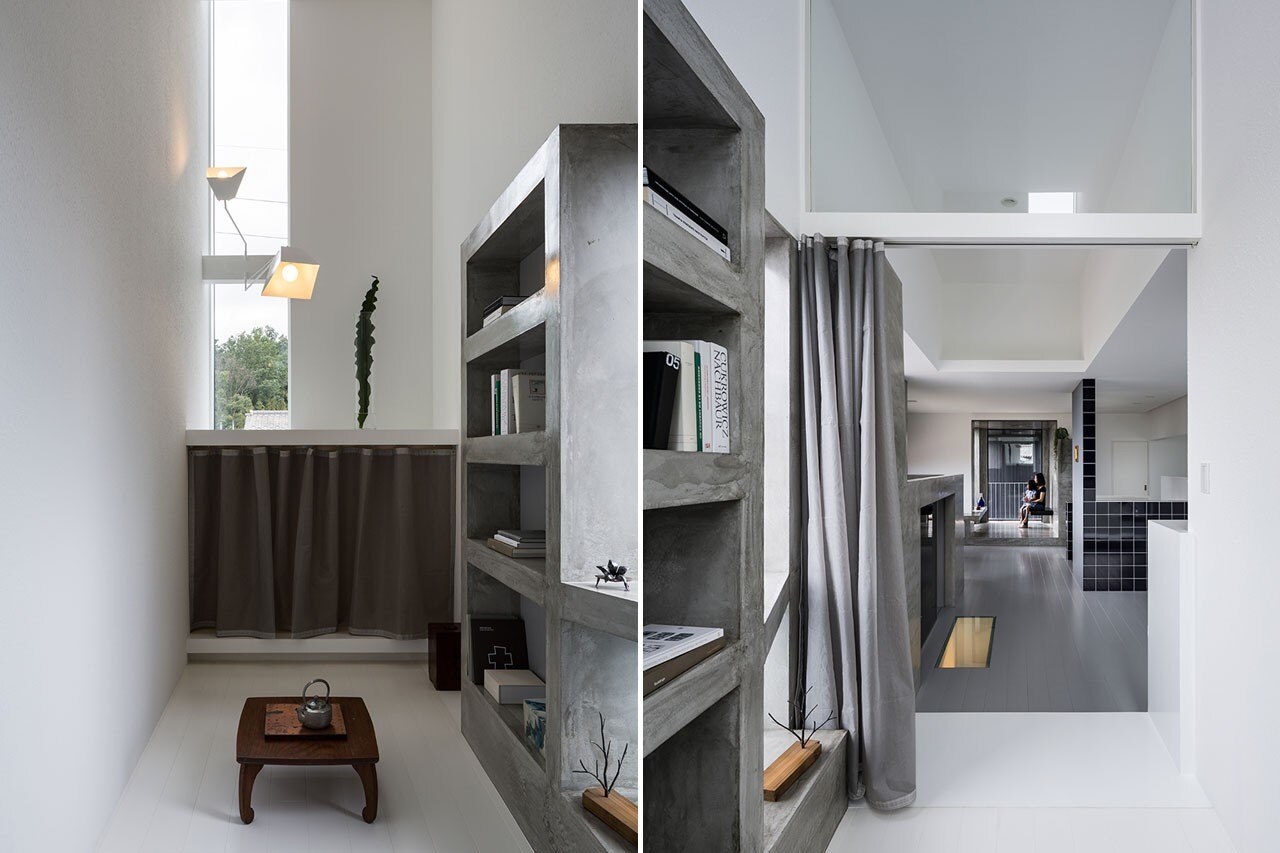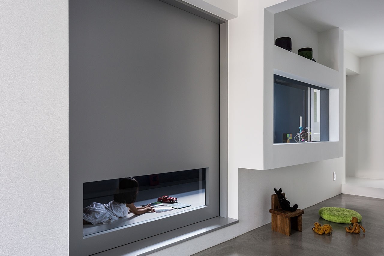 Inoltre, lo spazio serve anche come elemento che riflette i cambiamenti visivi di luce all’interno della stanza.