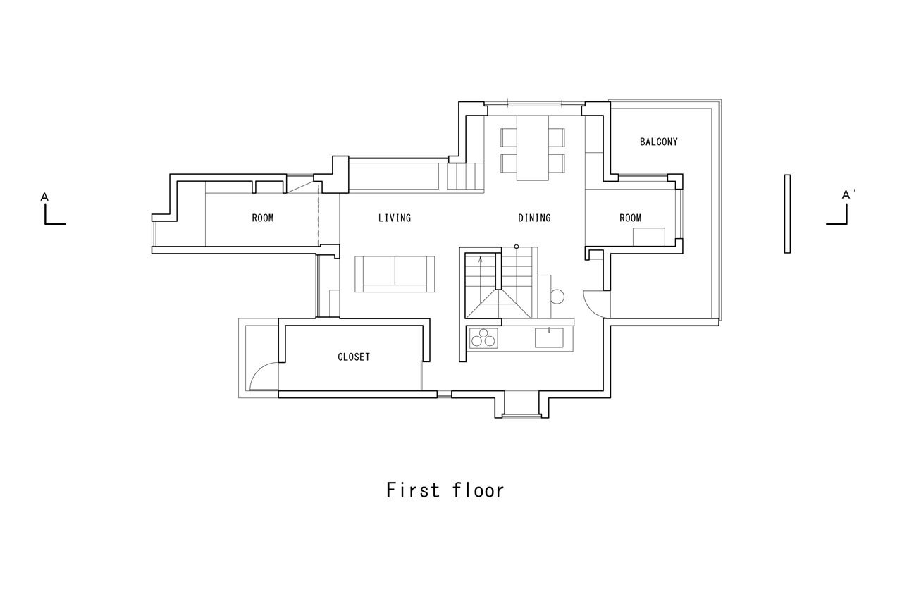 FORM/Kouichi Kimura Architects, Scape House, Shiba, Giappone. Pianta del primo piano