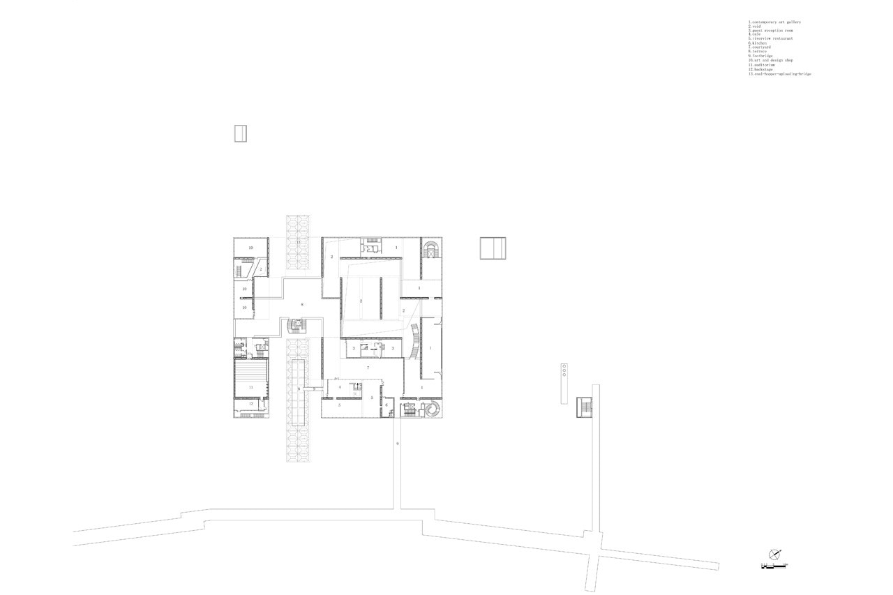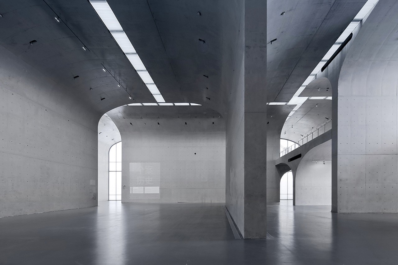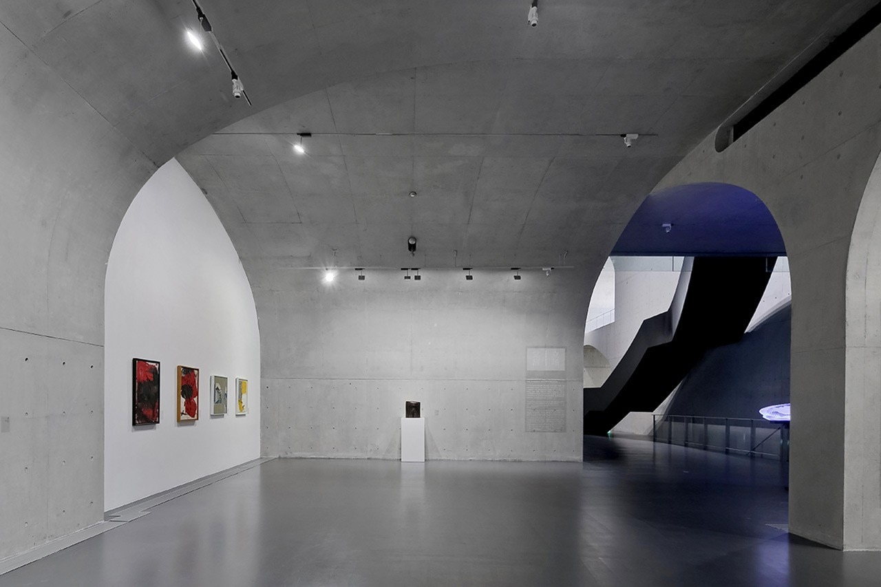 Lo spazio espositivo al piano terra e la “scatola bianca” al primo piano interrato sono collegati da una scala spiraliforme. La tensione parallela evidenzia lo spazio, primordiale ma realistico, e le opere d’arte dei periodi antico, moderno e contemporaneo, legano lo spazio espositivo alla temporalità.