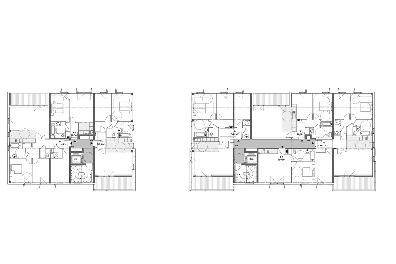 L’edificio, all’interno del quartiere verde, è stato sviluppato come uno spazio condiviso, da utilizzare collettivamente. Aree comuni e abitazioni condividono le stesse scale. I passaggi tra i blocchi sono progettati per favorire gli incontri.