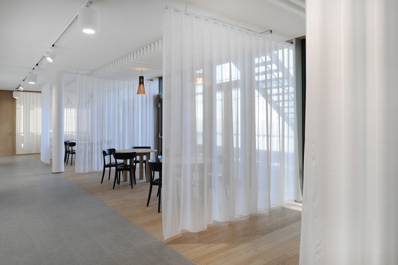 Gli spazi di lavoro sono stati progettati cercando di mantenere le aree open space sul prospetto sud. Gli spazi comuni e le aree meeting sono in posizione centrale, vicino a una scala, a un terrazzo o a un patio con vista particolare.