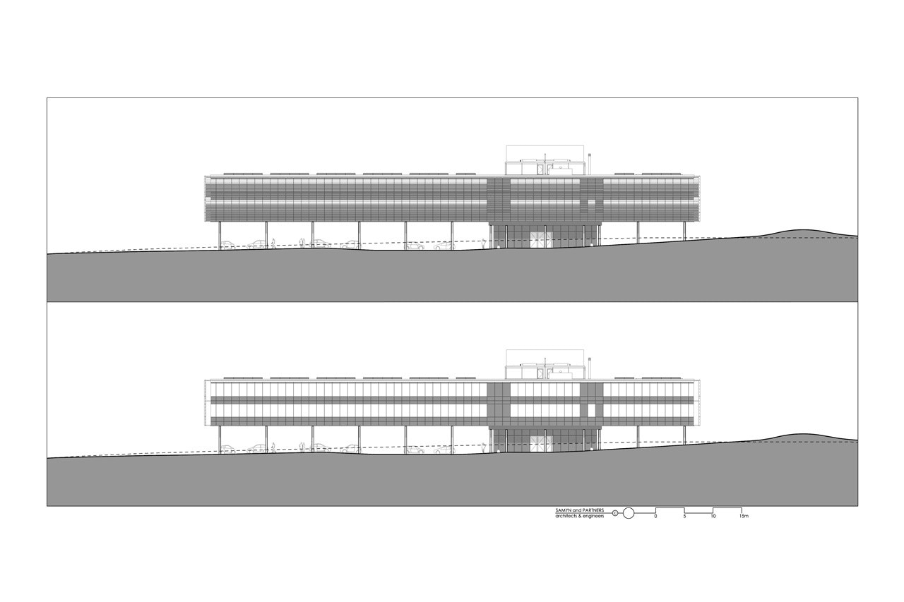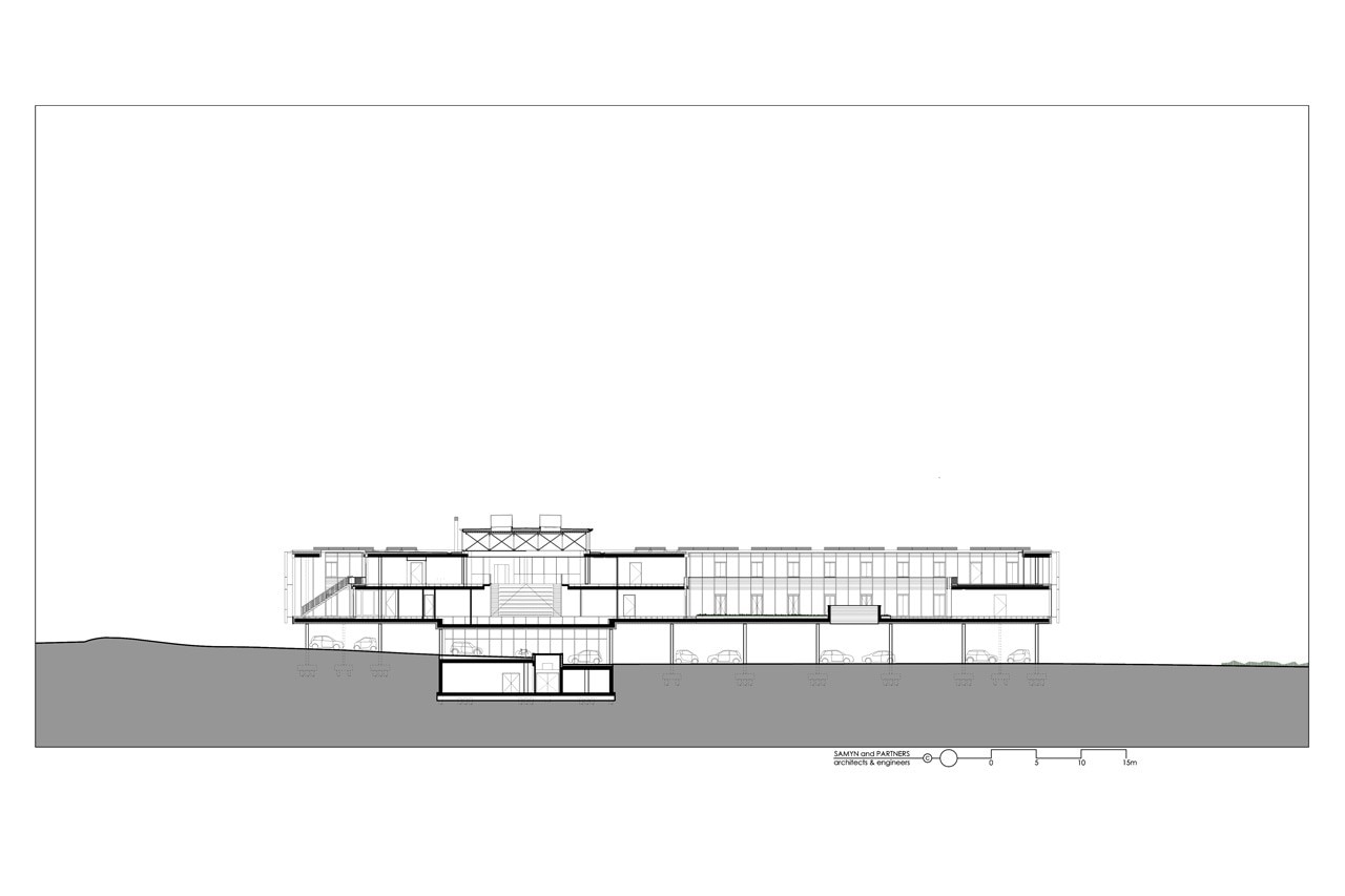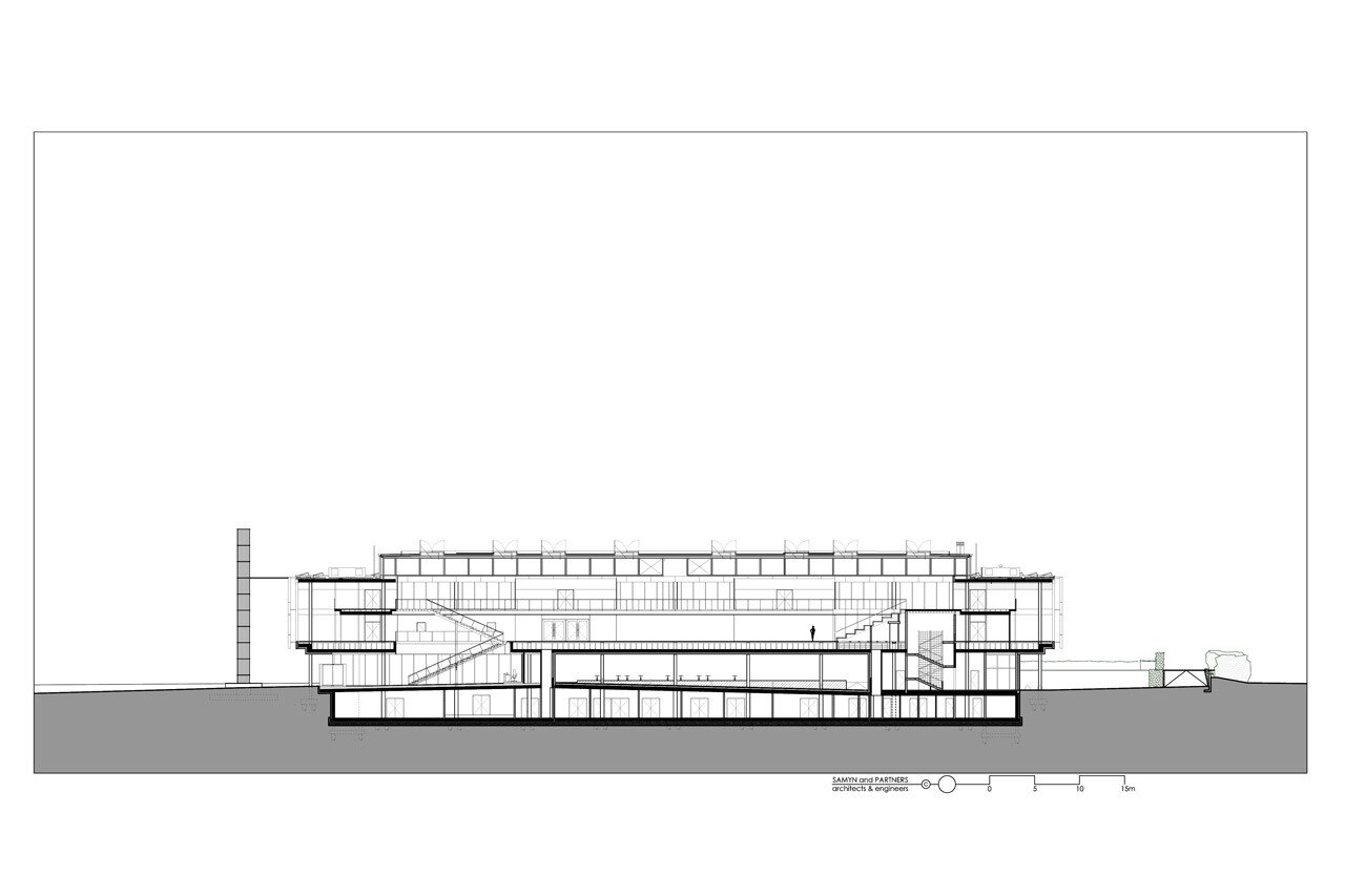 Il centro congressi riunisce tutte le sale riunioni che possono essere gestite in modo indipendente e, in questo modo, rese disponibili per altri utenti. Ogni ambiente è dotato di attrezzature audiovisive e gode di luce naturale e viste esterne. L’area ristorante si estende lungo il prospetto occidentale e si apre verso l’esterno con ampie terrazze, ospitando fino a 180 persone.