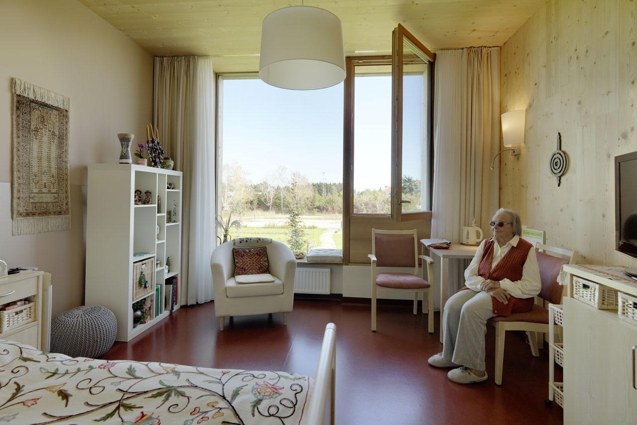 Ogni comunità è stata sviluppata intorno a un colore diverso per aiutare i residenti a orientarsi meglio. Le camere variano leggermente in relazione alla posizione e all’orientamento, ma ciascuna ha un finestra battente e una più grande con un parapetto basso riscaldato che può essere usato come seduta. Le camere di cura sono in posizione centrale all’interno dell’edificio, assicurando che siano a breve distanza per tutti e che la struttura possa operare in modo efficiente.