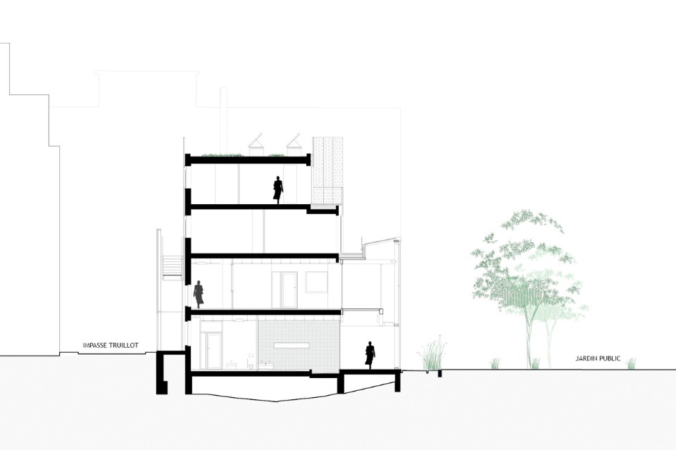 Questa operazione rappresenta una rara opportunità di costruire qualcosa di nuovo nel cuore dell’undicesimo arrondissement. L’intervento apre un cul-de-sac nascosto, lontano dalla complessità di Boulevard Richard Lenoir, e rivela il nuovo parco – uno spazio condiviso per stare insieme e rilassarsi – che gli abitanti attendono da lungo tempo.