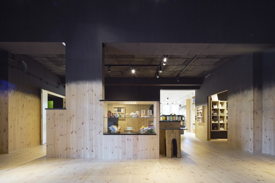 A tal fine, il vecchio edificio scolastico è stato annerito e coperto con una sequenza di tronchi verticali. La facciata presenta aperture per l’ingresso delle persone e della luce. Una serie di teche aggettanti viene usata come sedute, elementi segnaletici e contenitori di opere d’arte.