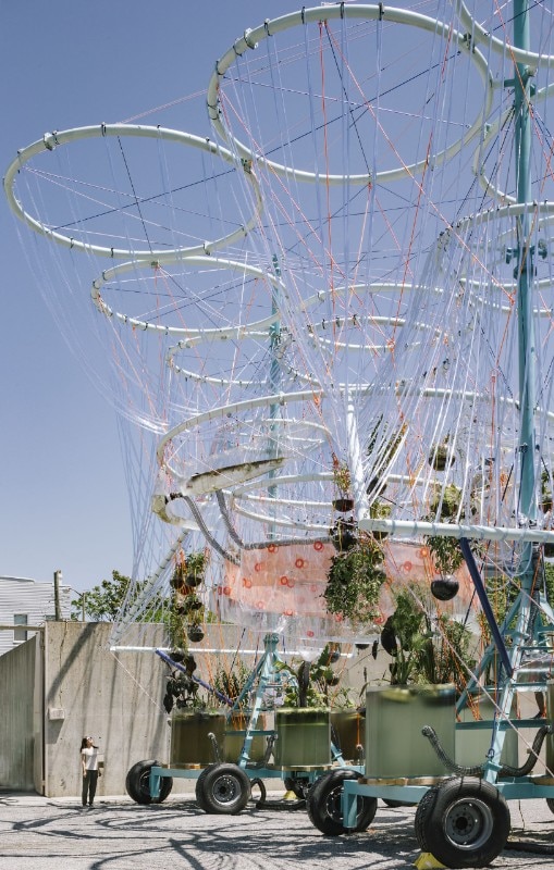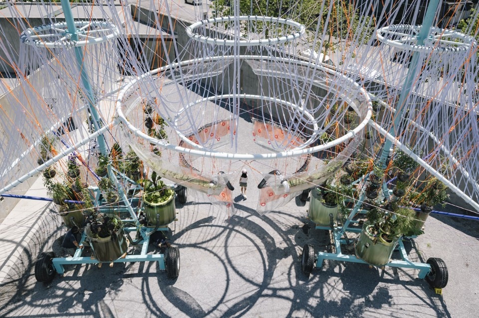 È stata questa, per Andrés Jaque, l’occasione giusta per creare un dialogo attorno al tema dell’acqua, credendo fermamente che l’architettura stessa sia un mezzo fondamentale per catalizzare l’attenzione sui problemi della società. Il padiglione, infatti, non è pensato solo ed esclusivamente per celebrare in maniera edonistica l’importanza della risorsa idrica ma vuole anche far riflettere sul modo in cui ogni giorno questa viene utilizzata. Cosmo, quindi, rende visibile il lungo e complesso processo attraverso cui l’acqua può essere purificata prima che diventi riutilizzabile e porta alla luce, attraverso i materiali, il complesso reticolo dove essa scorre nascosta ogni giorno sotto le strade delle città.