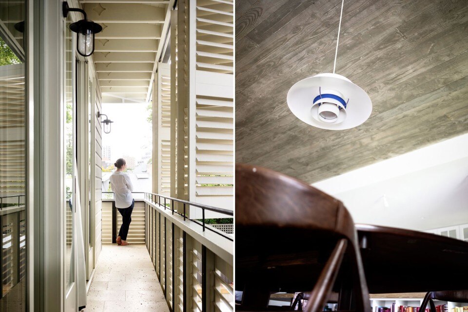 Le nuove aggiunte intraprendono un dialogo con la filigrana della veranda anteriore in stile vittoriano e con il modello bugnato delle mura senza imitare i materiali. La nuova loggia al piano superiore è rivestita con una parete finemente dettagliata di persiane ed elaborate decorazioni a sbalzo in legno.