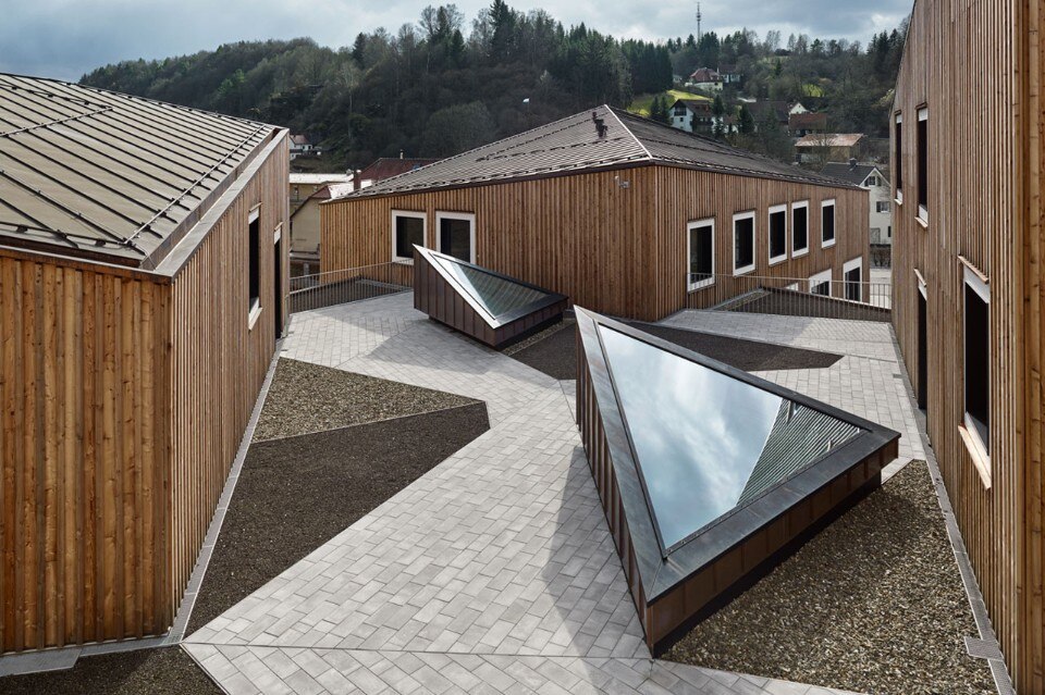 Il paese è caratterizzato da una fitta concentrazione di edifici in muratura e in legno distribuiti lungo la pittoresca valle del fiume Wiesent. Adiacente al villaggio e alla strada principale, il sito si trova su un prato leggermente inclinato delimitato a est da una foresta. Per integrare il campus nel paese il programma funzionale è distribuito in quattro padiglioni di 2–3 piani con tetti asimmetrici a due spioventi.