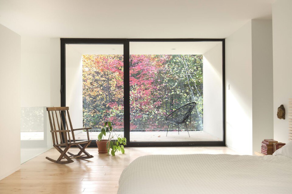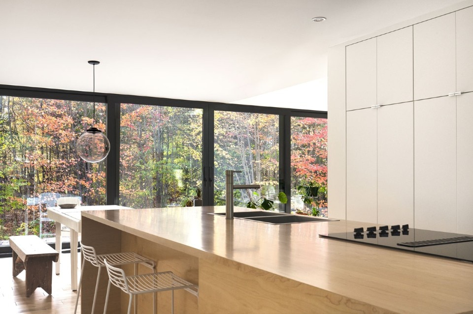 Nata da un drastico intervento di trasformazione di un tipico bungalow degli anni Novanta, la Maison Terrebonne si trova su un vasto terreno boscoso in Québec, Canada.