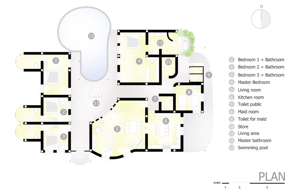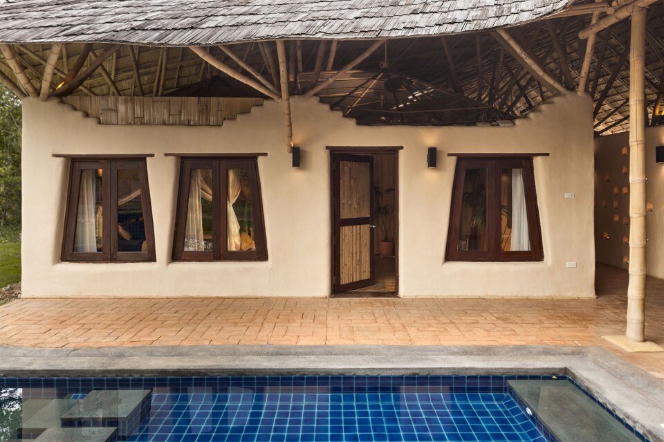 In Trika Villa – una residenza con cinque camere da letto, cinque bagni, un grande soggiorno / sala da pranzo, cucina moderna e spazio di vita all’aperto intorno alla piscina – Chiangmai Life Construction adatta materiali naturali come la terra e il bambù alle esigenze del ventunesimo secolo.