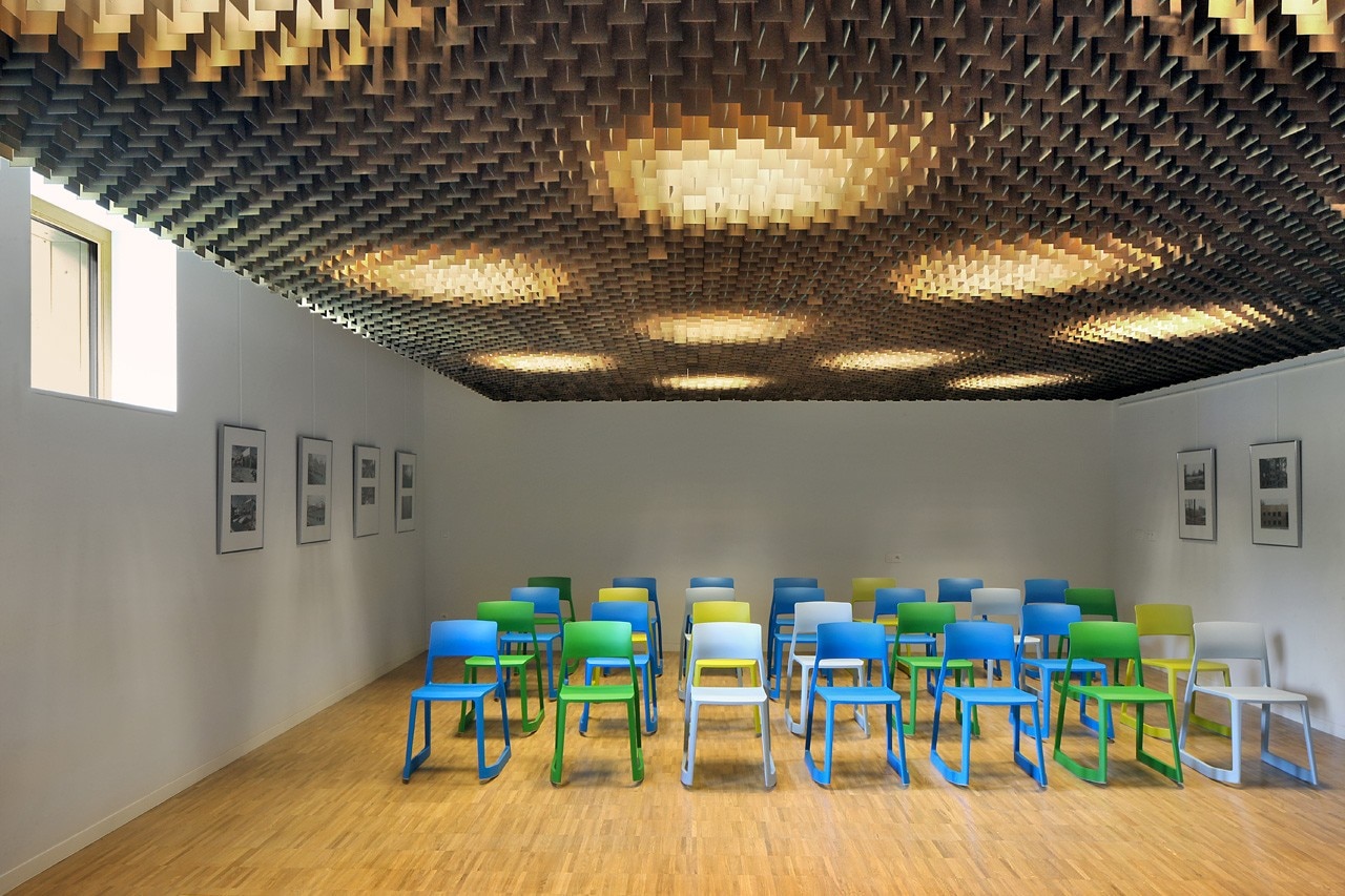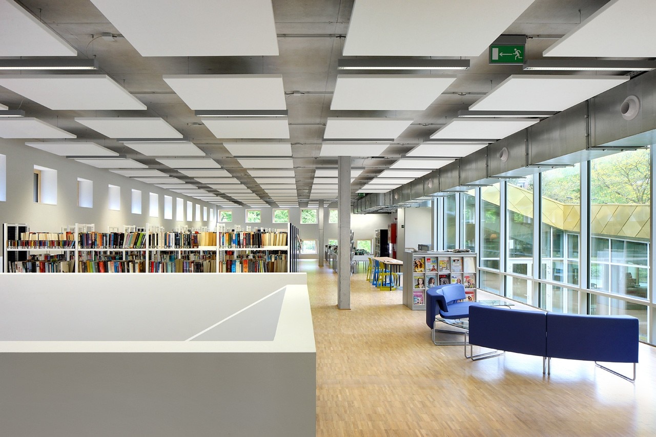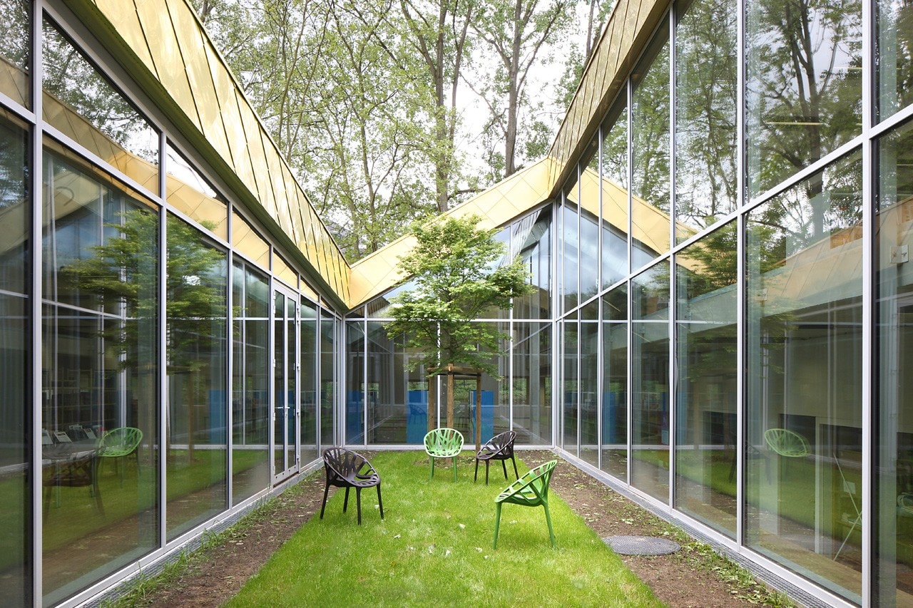 Un aspetto importante del progetto è il cortile-giardino che regola il clima e riduce il consumo energetico dell’edificio per l’illuminazione e permette allo stesso tempo di leggere all’aperto.