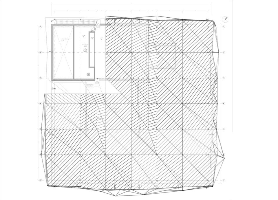 La distribuzione degli spazi a corona attorno ad uno spazio centrale permette di ottimizzare la superficie destinata alla circolazione e di evitare dei corridoi a favore di uno spazio di aggregazione più generoso. Inizialmente il programma prevedeva uno spazio caffetteria centrale per 30 persone. Air Architectures ha insistito con il committente sulla necessità di un luogo di incontro più grande per i ricercatori, così che lo spazio centrale dell’intervento è divenuto il vero cuore del progetto capace di ospitare fino a 300 persone e di utilizzare la superficie destinata ai corridoi come superficie di transizione. A determinare i volumi del progetto sono state scelte tecniche risultanti dall’ottimizzazione delle altezze in funzione dell’apporto solare desiderato per beneficiare così al massimo dell’illuminazione naturale.