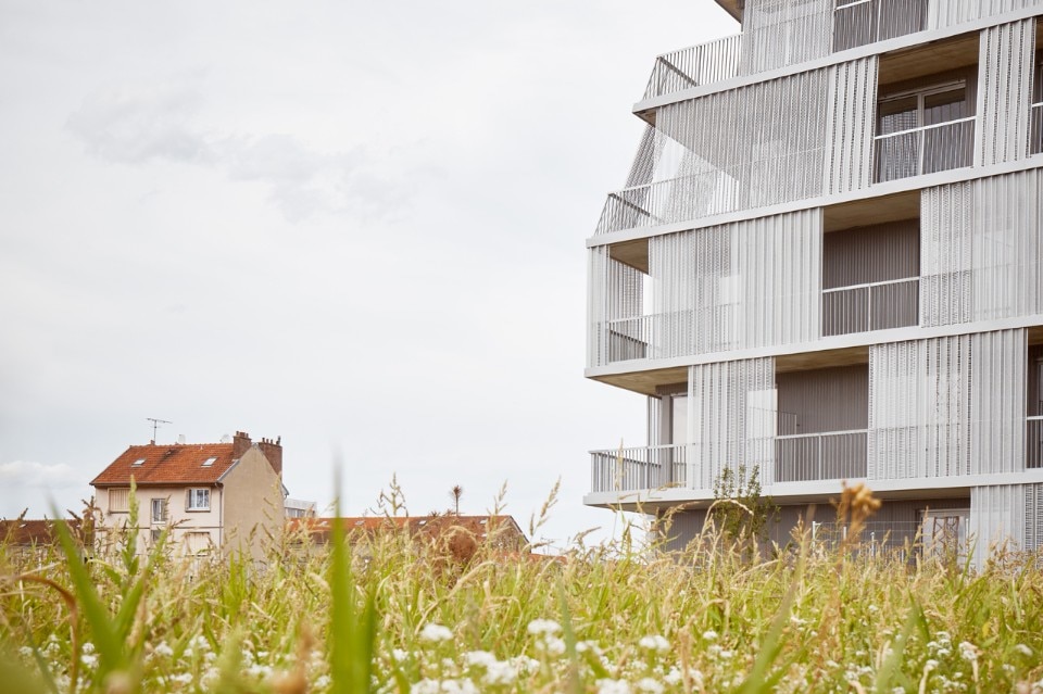 Il dormitorio è progettato secondo quattro principi architettonici principali. Prima di tutto, l’intero progetto è organizzato per funzionare razionalmente (sovrapposizione della struttura e delle prestazioni tecniche) e per essere compatto. La sua distanza dal resto del programma (che non fuoriesce dal tetto della scuola o da quello della palestra) conferisce una certa indipendenza e distacco. Disposto più a nord possibile con un minimo di facciata che si affaccia sulla avenue Jean-Jaurès, è progettato in modo da non oscurare il sole ai campi da gioco. La facciata leggera è costituita da pannelli metallici forati, alcuni fissi e altri scorrevoli, che servono sia per filtrare la vista dalla strada sia come sistemi di ombreggiamento.