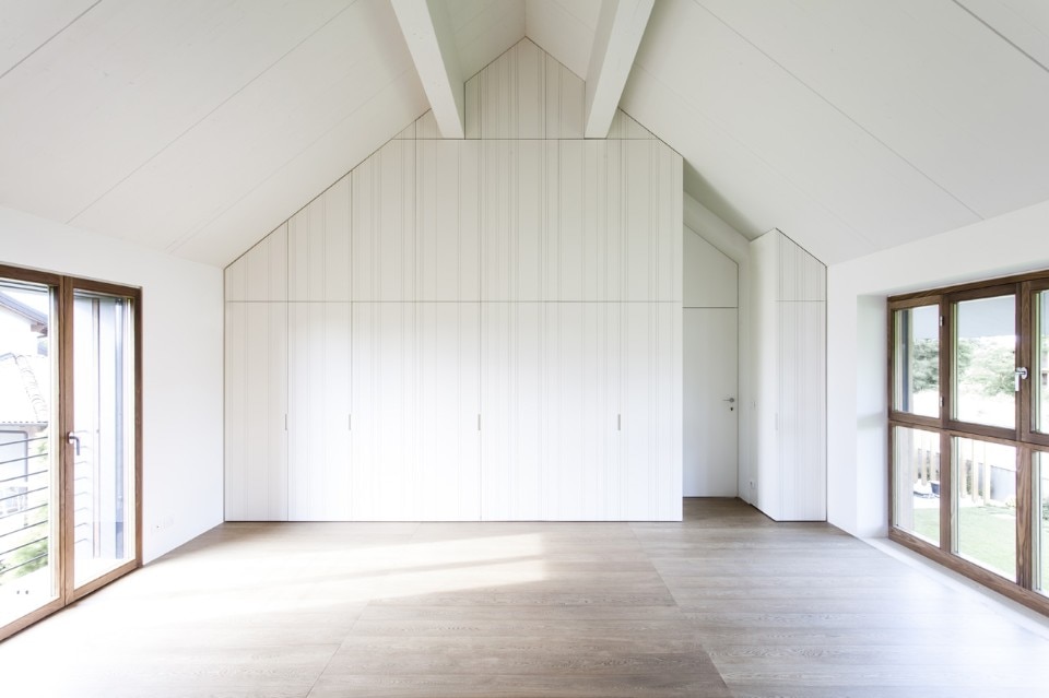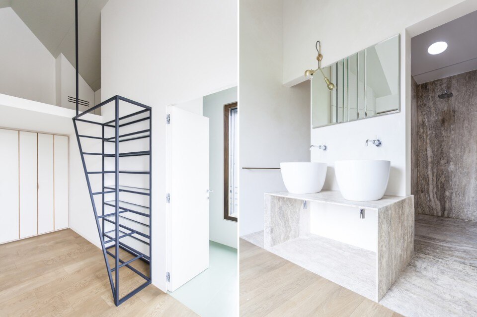 La duplice esposizione delle stanze, valorizzata dalle relative aperture con affaccio sul giardino, regala agli ambienti interni un’abbondante luce naturale che anima i locali: si tratta per la quasi totalità di ampie porte finestre che illuminano pienamente gli interni. La luce scaturisce anche dai grandi camini esterni che in alcuni casi ospitano canne fumarie mentre in altri, per l’appunto, diventano veri e propri camini di luce.