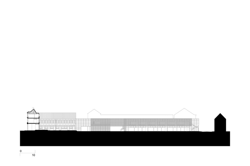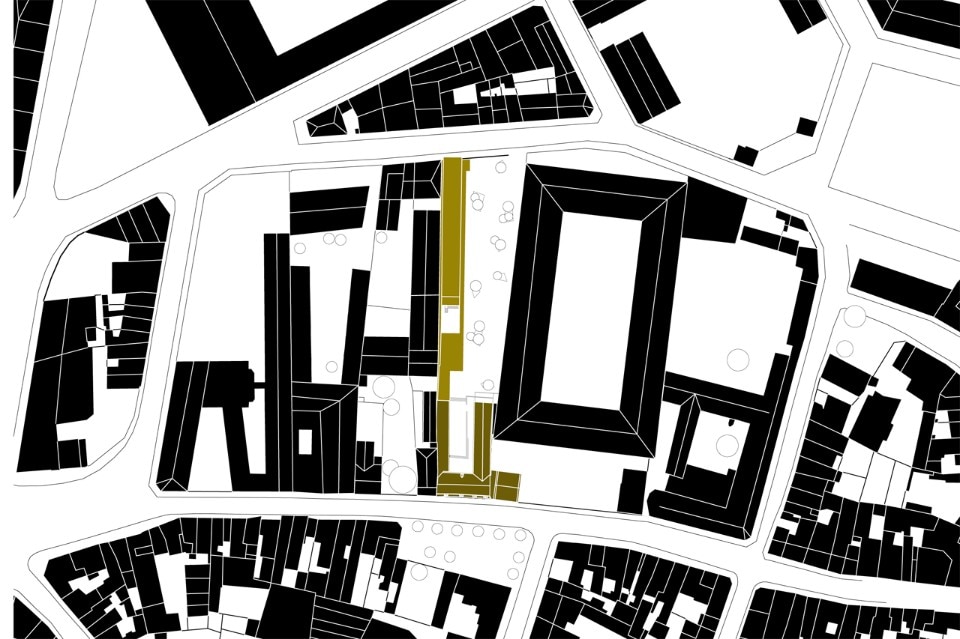 La prima collega esplicitamente la “piazza della croce” a Trouille Street. Questa linea introduce la “rue du design”, dando vista al quartiere “carré des arts”, instaurando nuovi rapporti: questi lotti non sono più schiena contro schiena, ma dialogano attraverso la strada interna. La seconda linea, più implicita, guarda al “carré des arts” e indica la sequenza di tre vetrine proposta da Matador per collegare questo edificio al lotto di progetto. Il restauro della sezione più antica non ha consentito alcun intervento contemporaneo sulla facciata storica o sui tetti, sottoposti a vincolo.