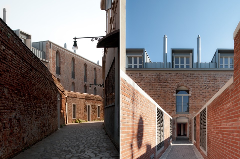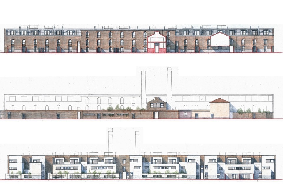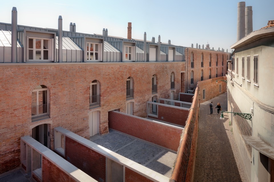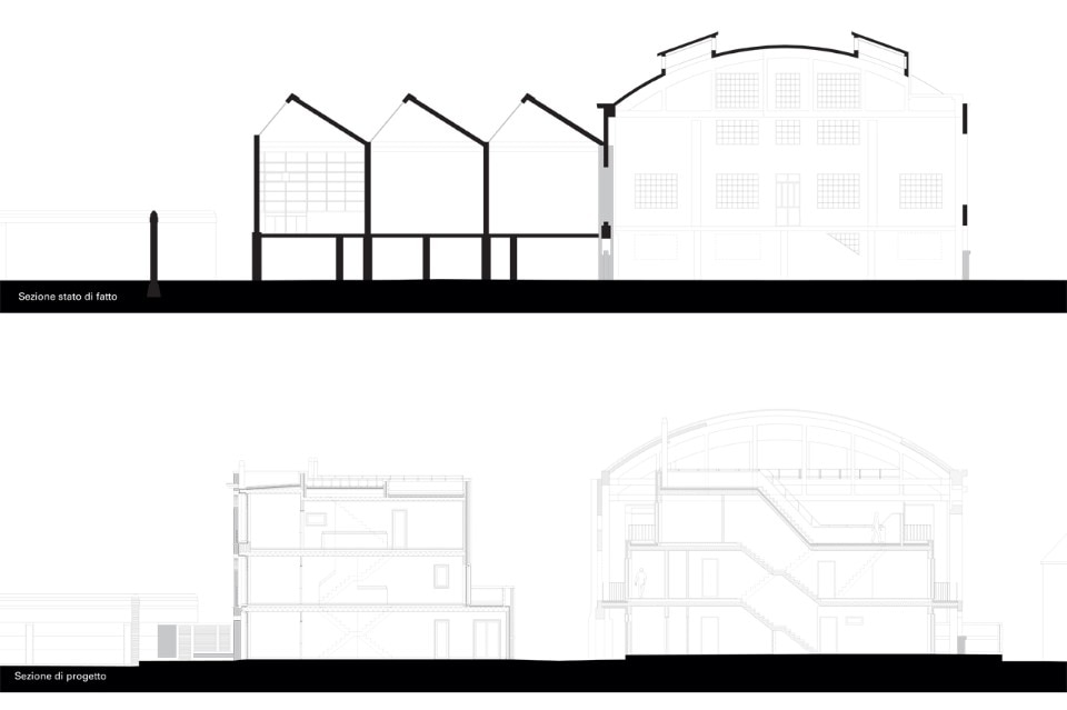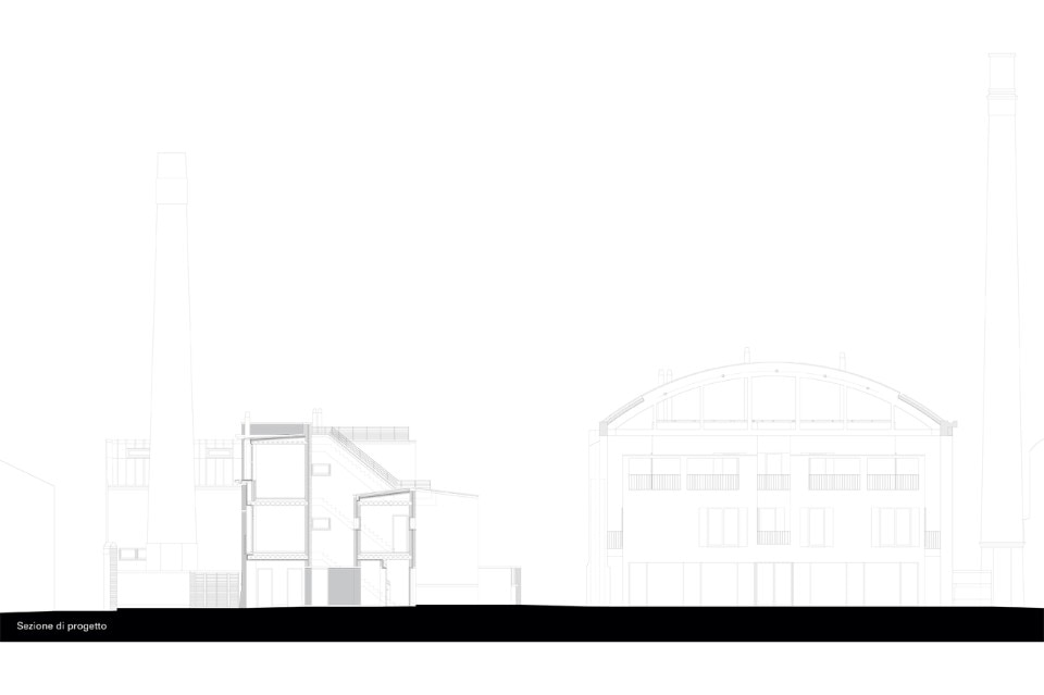 A incarnare questa discontinuità è proprio la soglia, ossia la spessa membrana del muro che serra l’intero ambito e i grandi edifici, impedendo ogni permeabilità con l’edificato adiacente, sottolineando un limite all’accessibilità e al collegamento tra i luoghi e, data anche la posizione, enfatizzando la cesura all’interno dell’isola Il programma di recupero avviato dall’amministrazione comunale propone il riutilizzo dell’area e degli immobili grazie al reinserimento in un contesto più vasto e l’introduzione di nuove attività che possano restituirli all’isola, e così alla città, con la progettazione di un albergo, due complessi residenziali, luoghi per il commercio e l’artigianato, nonché nuovi percorsi pubblici. I nuovi edifici residenziali sono costruiti all’interno della fabbrica esistente da anni in disuso di cui il piano prevede la parziale conservazione.