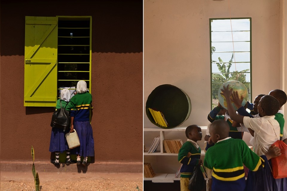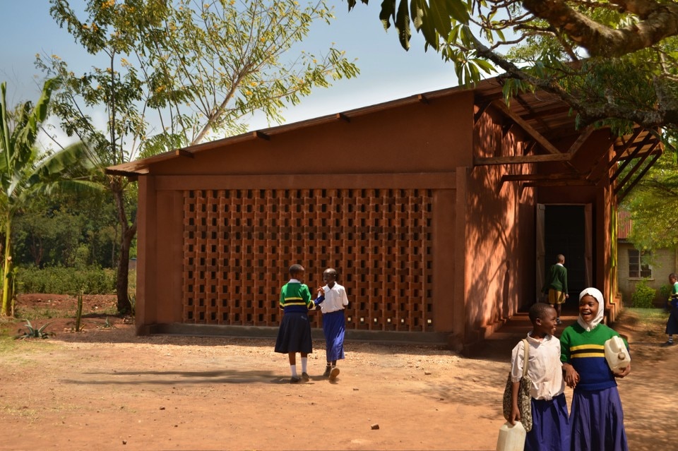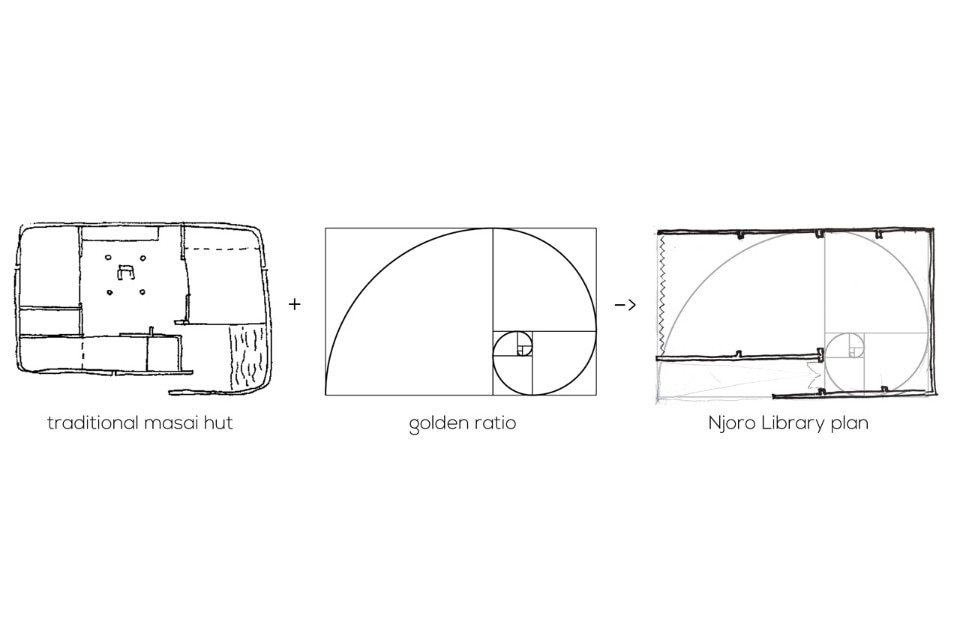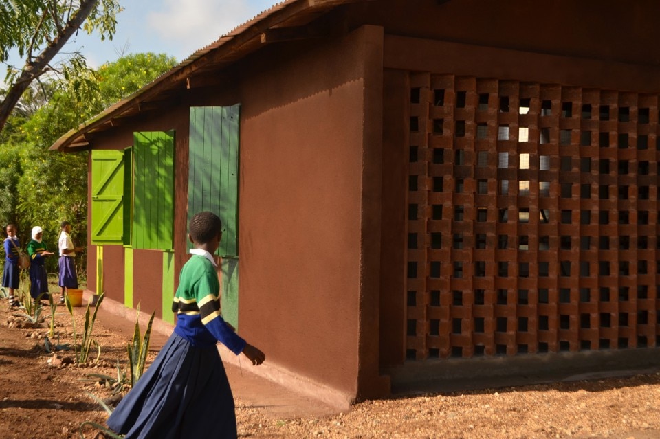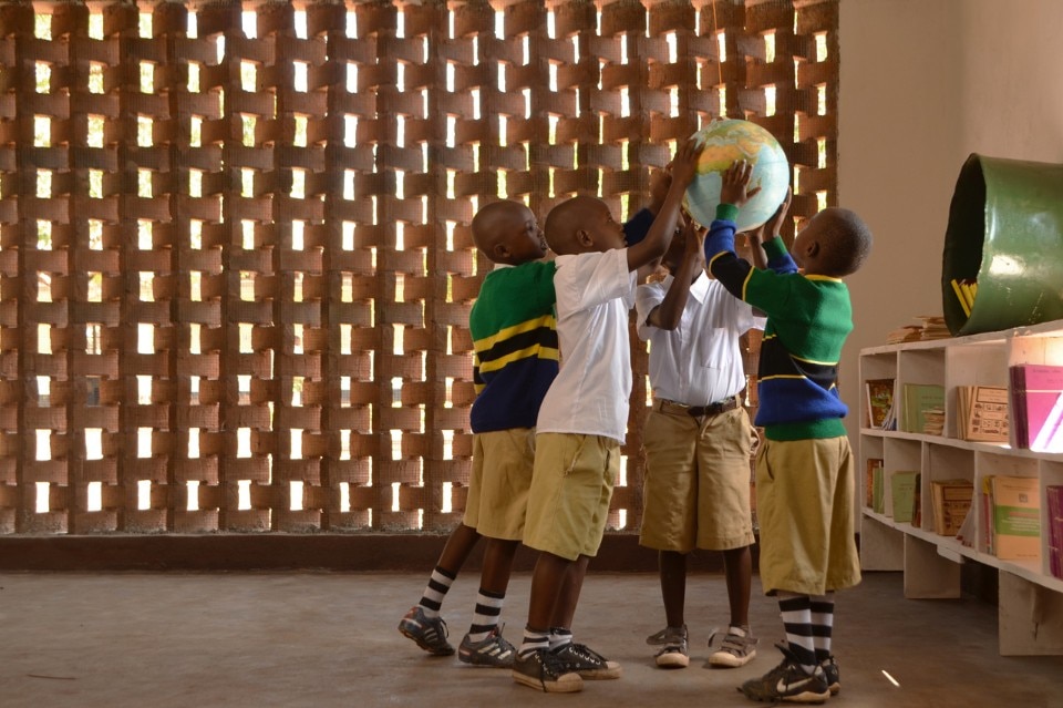 Il piano della biblioteca – con un ingresso nascosto – è stato in gran parte ispirato alla casa tradizionale Masai, un gruppo etnico nella zona. L’ingresso è situato sul lato del cortile, ma nella direzione del percorso principale, creando lo spazio per la rampa. Il muro di mattoni cotti ha lo scopo di consentire la ventilazione e l’ingresso della luce naturale, ma anche il collegamento visivo con la scuola. Con i suoi piccoli fori sulle facciate si crea un gioco di luci all’interno e all’esterno e si migliora la ventilazione.