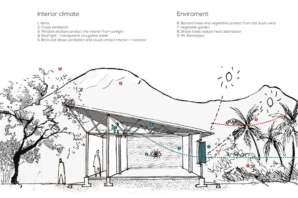 La biblioteca si trova a Mailisita, sulle pendici del monte Kilimanjaro, una zona isolata in cui la scuola deve funzionare in modo efficiente, senza usare l’energia di rete. La biblioteca è stata costruita senza utensili elettrici, utilizzando solo i metodi tradizionali locali.