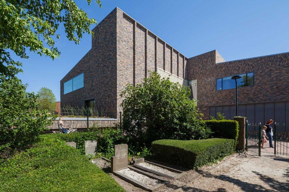 La facciata in mattoni è interrotta da ampie vetrate che si estendono per tutta la lunghezza del volume. Il vetro è anche l’elemento principale dell’ingresso, dal quale è immediatamente comprensibile il layout. La struttura è semplicemente divisa in due sezioni: una zona pubblica e una con gli uffici, che convergono nell’atrio luminoso, il cuore del municipio, dove si incontrano e si confrontano il Consiglio, i dipendenti pubblici e gli abitanti.