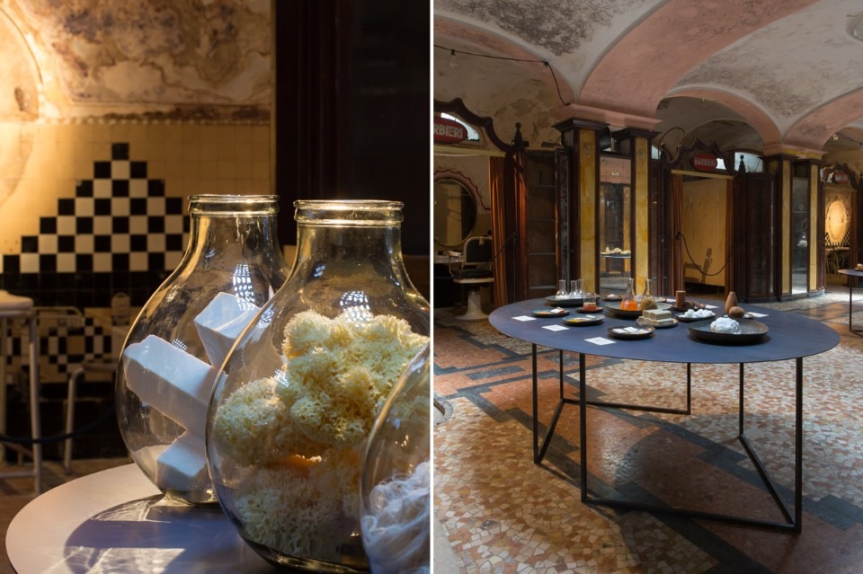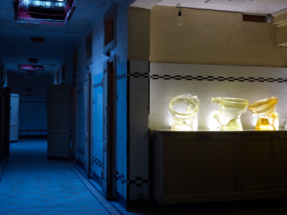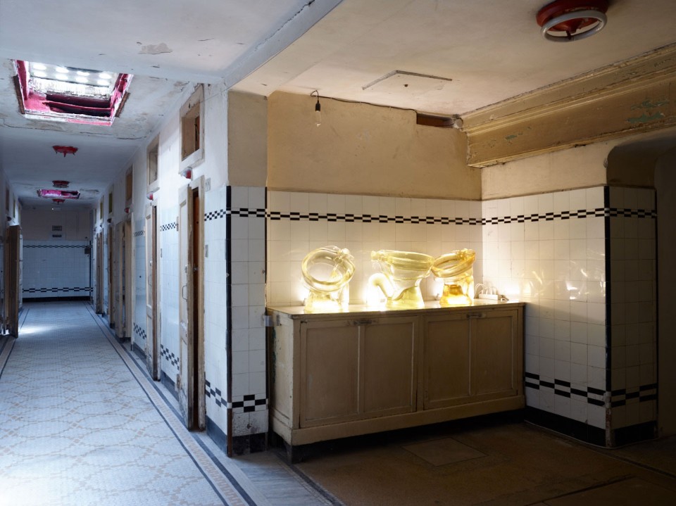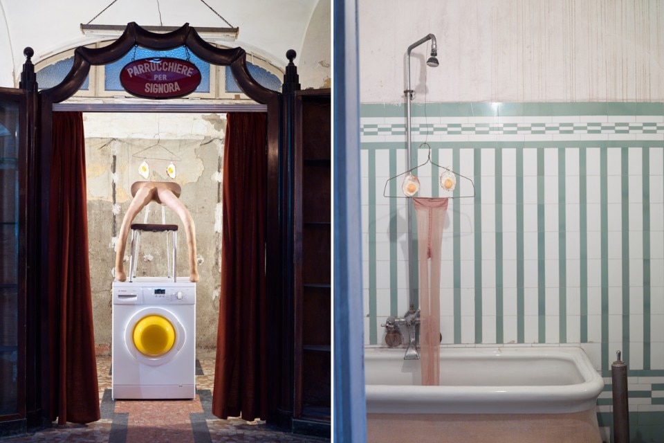 Sarah Lucas, INNAMEMORABILIAMUMBUM, Albergo Diurno Venezia, Milano. Progetto ideato e prodotto da Fondazione Nicola Trussardi e miart, in collaborazione con il FAI e il Comune di Milano, a cura di Massimiliano Gioni e Vincenzo de Bellis. Courtesy Fondazione Nicola Trussardi e miart. Photo Marco De Scalzi