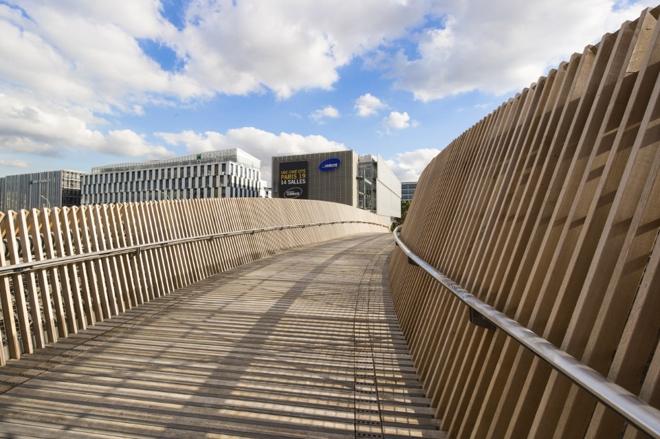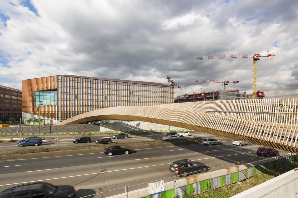 Semplice come una pennellata e dalla forma snella, il cavalcavia Claude Bernard attraversa elegantemente il Boulevard Périphérique, tra Aubervilliers e Parigi. La struttura ad arco in metallo e legno misura quasi 100 metri di lunghezza e collega il Parc du Millénaire al quartiere Claude Bernard, in via di sviluppo.