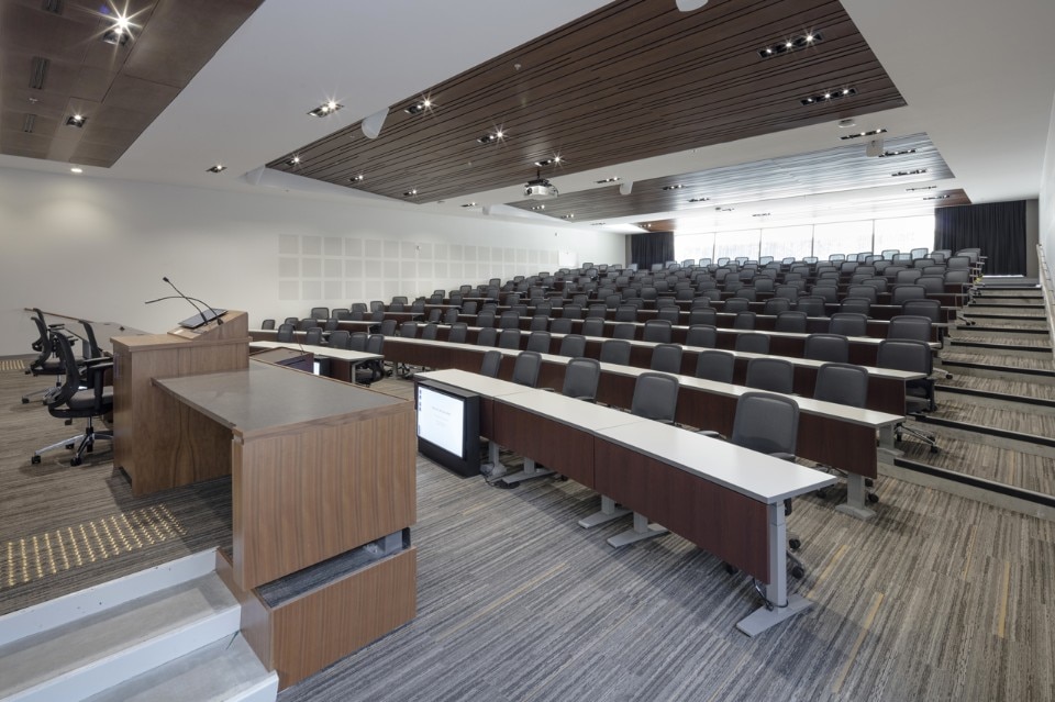 La nuova ala comprende una sala conferenze per 210 studenti – progettata per funzionare sia come classe che come aula di tribunale – diverse sale per seminari, nuovi spazi comuni, aule studio, uffici per docenti e personale, una nuova mensa.