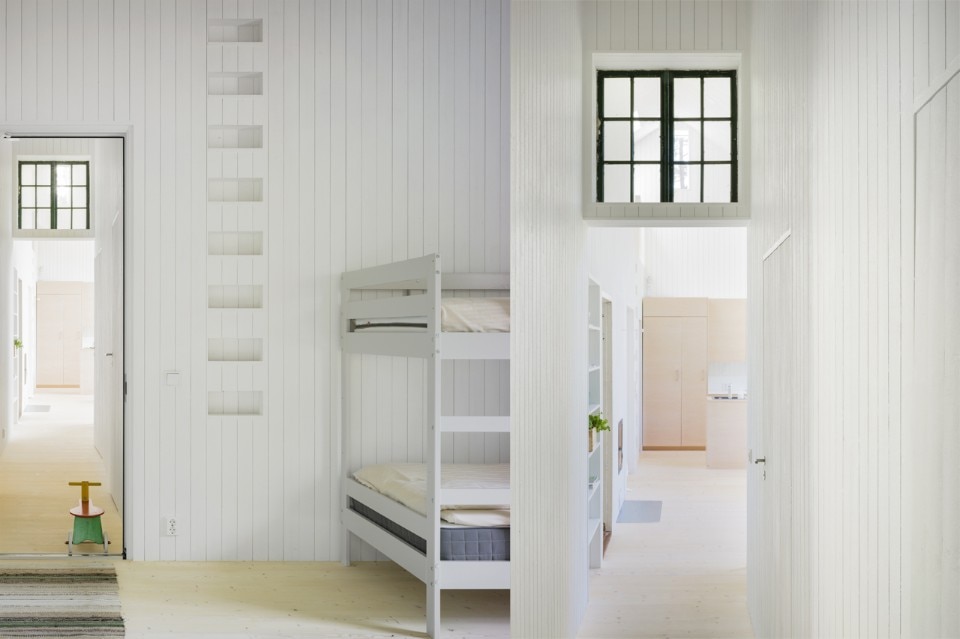 La maggior parte delle ville storiche sono state conservate con le loro grandi torri, verande e balconi, mantenendo intatta un’atmosfera senza tempo. La Gamla Villan ne è un richiamo contemporaneo, situata su un terreno tranquillo e riparato. La vista dalla casa incornicia querce e meli su un grande prato e il mare sullo sfondo. La rimessa e la camera per gli ospiti sono state integrate nello spazio principale, e l’altezza della casa enfatizzata per poter giocare con la pianta aperta e le doppie altezze.