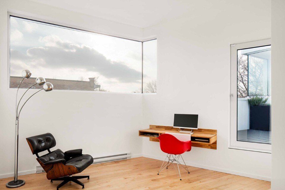 L’intervento è stato minimo su Dandurand Street, strada molto trafficata, e si estende soprattutto sulla perpendicolare. I mattoni della facciata sono stati sostituiti, mantenendo però le aperture originali. Agli angoli sono state invece aggiunte delle grandi finestre, moltiplicando i punti di vista sul paesaggio urbano.