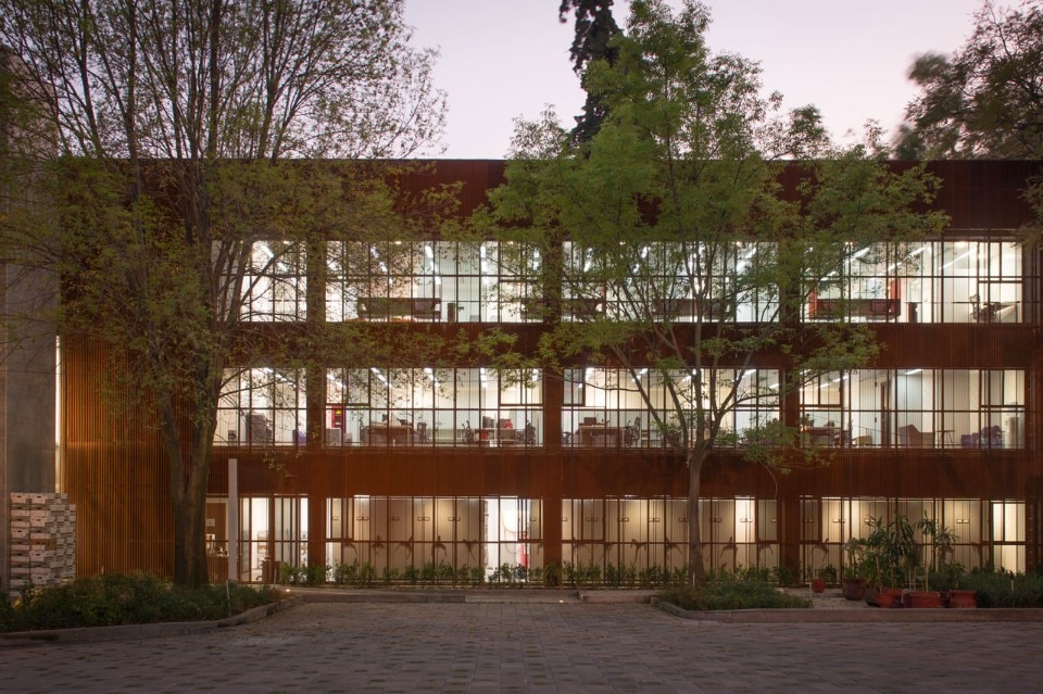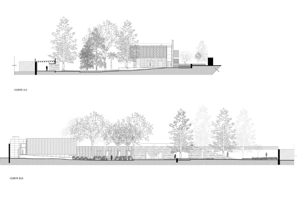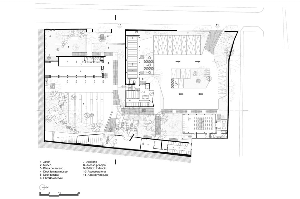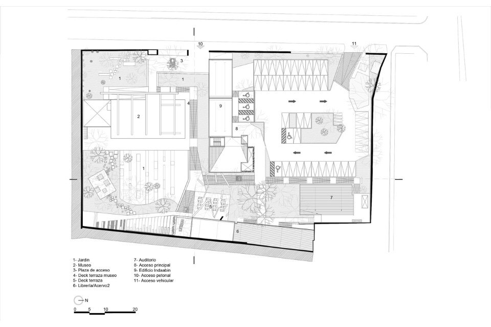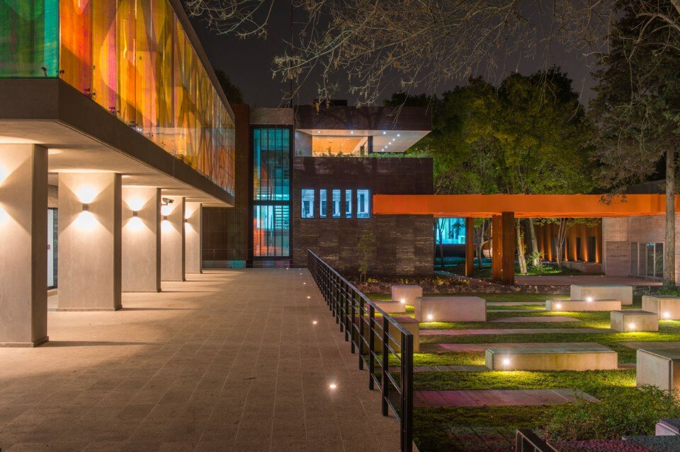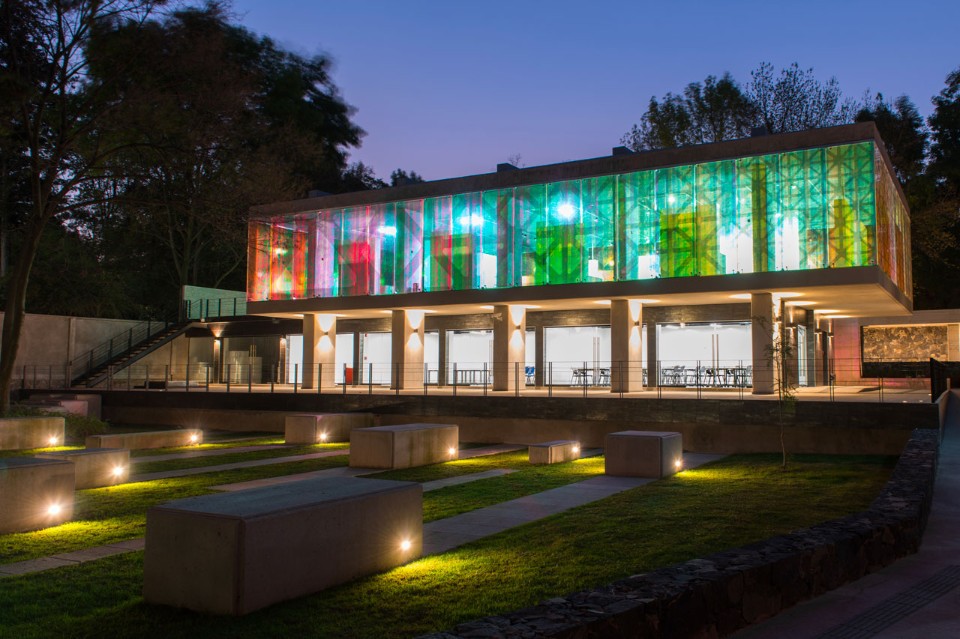 Gli architetti volevano che i visitatori potessero passeggiare attraverso una serie connessa di giardimi, piazze, vie e cortili che rivelano gradualmente l’architettura del centro culturale. La struttura è divisa in quattro volumi. Quello principale è il museo con i suoi spazi espositivi superiori e inferiori, accessibile dalla strada Salvador Novo. La costruzione ha un basamento su cui poggia un altro volume leggermente traslato, creando una galleria superiore e un portico inferiore. La scatola colorata crea uno sbalzo su due lati dell’edificio.