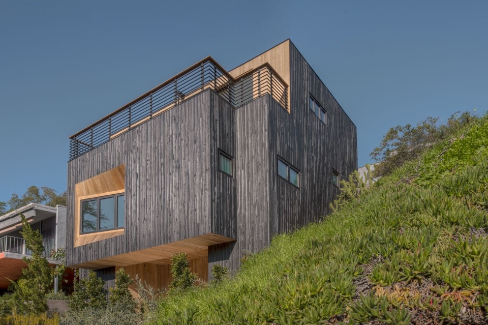 Anche due delle finestre della casa alludono al museo di Breuer, facendo riferimento alle sue forme angolari. La prima finestra è un ritaglio ruotato nella facciata anteriore che orienta la vista della camera matrimoniale verso il Silver Lake Reservoir, regalando un’esperienza cinematografica del paesaggio naturale. La seconda finestra esce verso il cortile, inquadrando la collina.