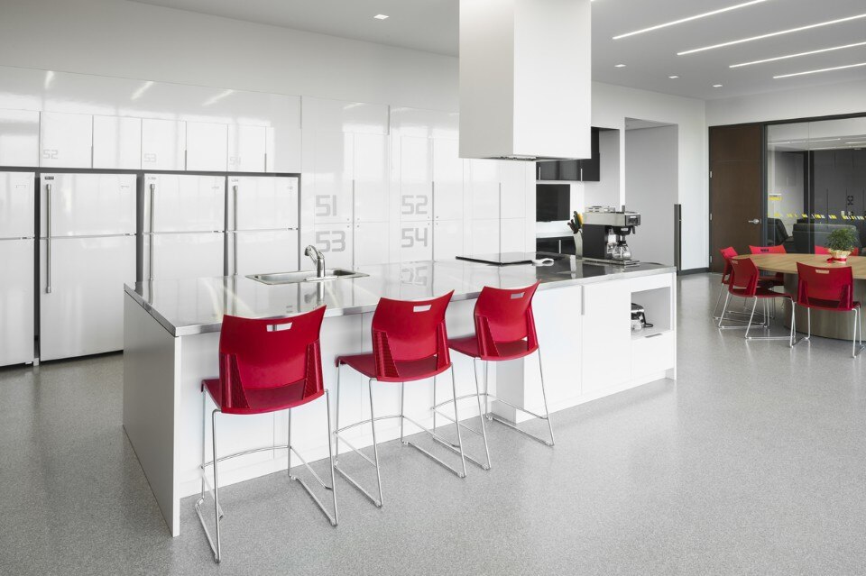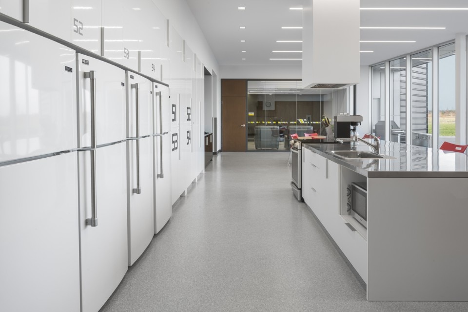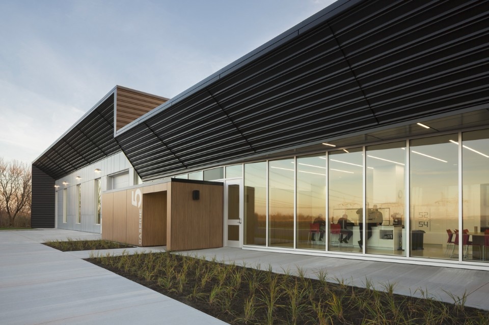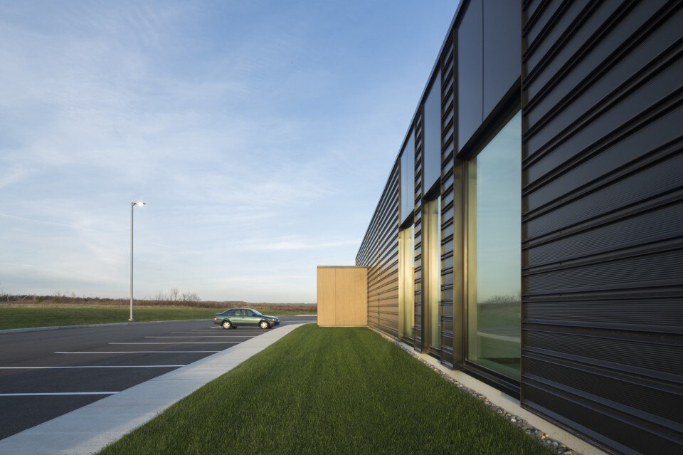 L’edificio è caratterizzato dalla semplicità della forma e dei materiali utilizzati, con un rivestimento di alluminio nero punteggiato da parti argentate e con grandi sezioni vetrate. Gli ingressi sono contrassegnati da piccoli volumi di legno che continuano all’interno della struttura. Questi blocchi hanno una dimensione ridotta per favorire la scala umana del complesso.