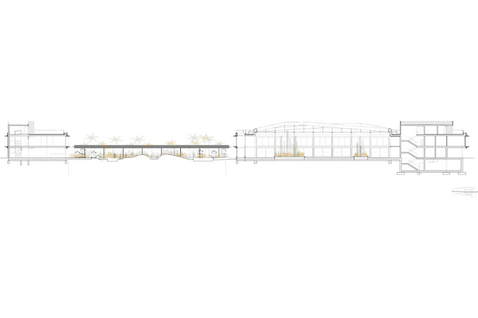 Una grande struttura longitudinale, parallela alla strada, è disposta simmetricamente come un chiostro. La leggerezza della copertura è possibile grazie alla particolare tensostruttura, unica in Spagna. Il tetto è realizzato utilizzando tecnologie all’avanguardia e diventa un elemento iconico del progetto, mettendo in mostra l’impegno della Desert City per l’innovazione e l’immaginazione.