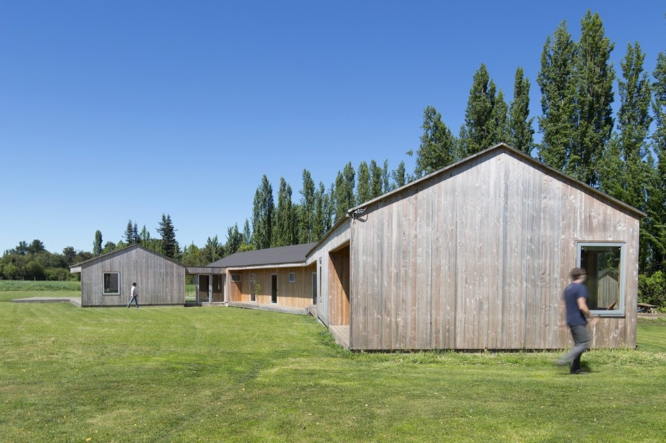 Il riferimento alle architetture locali serve come strategia per inserire il progetto nel paesaggio cileno. La casa si sviluppa in lunghezza. I volumi dalla caratteristica forma allungata sono piegati per definire la dimensione degli spazi interni e per rapportarsi visivamente con la bellezza dell’ambiente circostante.