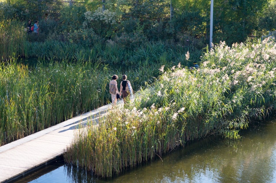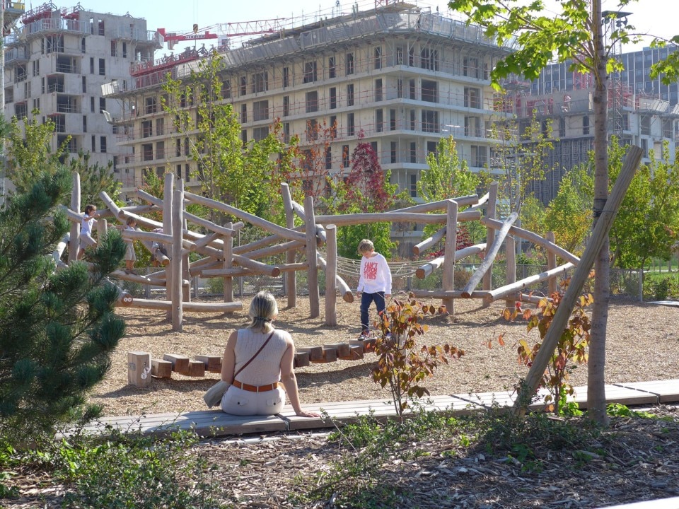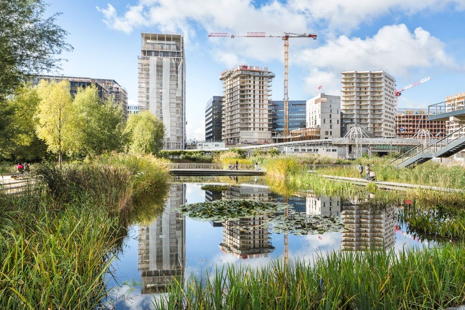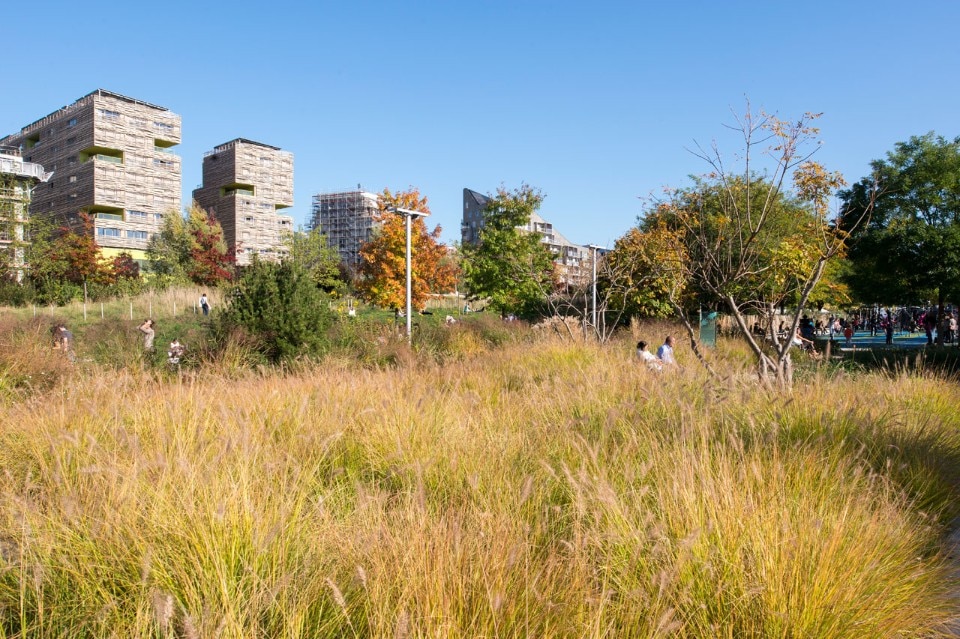 Ancora, mentre il parcheggio di auto private è ridotto al minimo, il Comune ha progettato l’estensione di una linea tranviaria e sta contribuendo a finanziare quella della linea 14 della metropolitana. È evidente, come l’impronta di carbonio sia qui uno strumento attivo di progettazione di un nuovo pezzo di città. Passeggiando tra i viali del parco e i suoi numerosi playground e guardando le pelli attraenti degli edifici che gli stanno intorno, viene da immaginare il quartiere come un pezzo di città per le tasche di pochi. Invece, la diversità sociale e la capacità d’inclusione sono state al centro del progetto: il 50% dei 3.400 appartamenti è dedicato al social housing, il 20% ha un prezzo controllato e il 30% è a prezzi di mercato. Non a caso, ciò che racconta meglio l’eccezionalità di questo cantiere è il fatto che la prima parte a essere consegnata alla città sia stata proprio il parco.