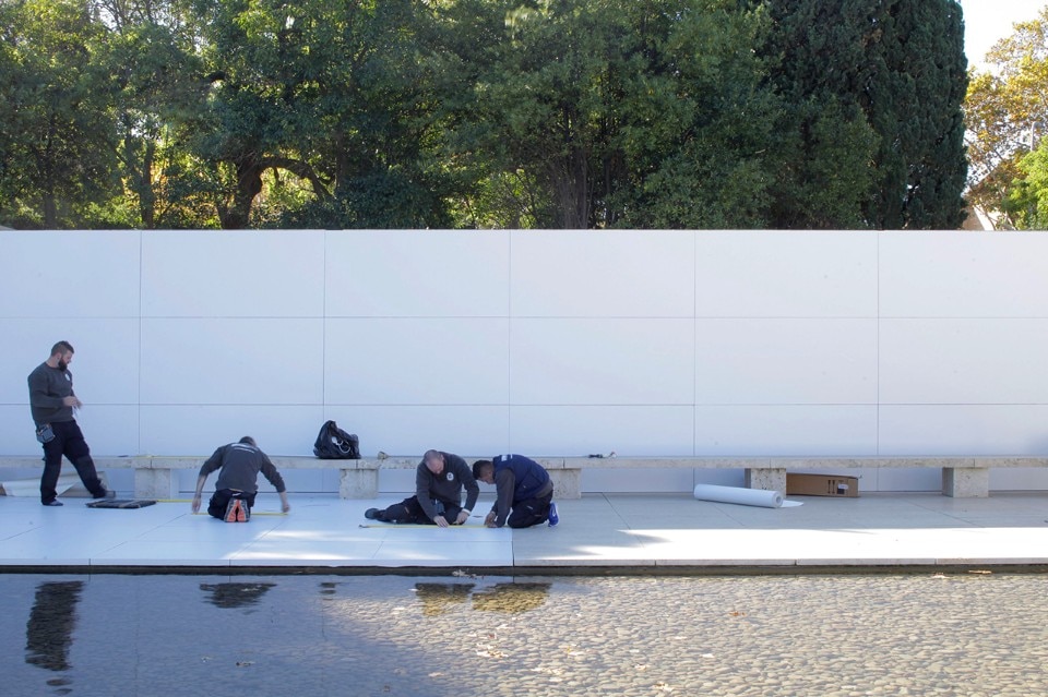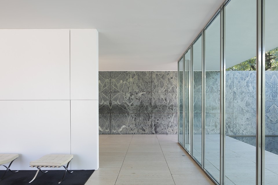 Sette giorni fa abbiamo pubblicato l’installazione temporanea di Anna e di Eugeni Bach Mies Missing materiality, in cui le superfici di travertino, marmo di Tino, marmo antico di Vert e onice dorato sono state coperte da pannelli di vinile bianco.