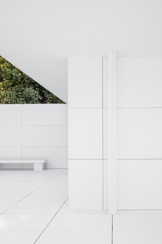 Il bianco ha un effetto uniformante sulle diverse superfici del Padiglione di Barcellona, quindi le parti diverse (muri, soffitti, pavimenti, pilastri) perdono la loro gerarchia. Il ruolo del bianco non è solo quello di rappresentare la perdita della materialità, ma è anche emblema della prima parte del Movimento Moderno. L’installazione vuole sottolineare la contraddizione/paradosso che si genera tra il bianco come emblema di quel Movimento e il padiglione di Mies come una delle icone di questo stesso movimento.