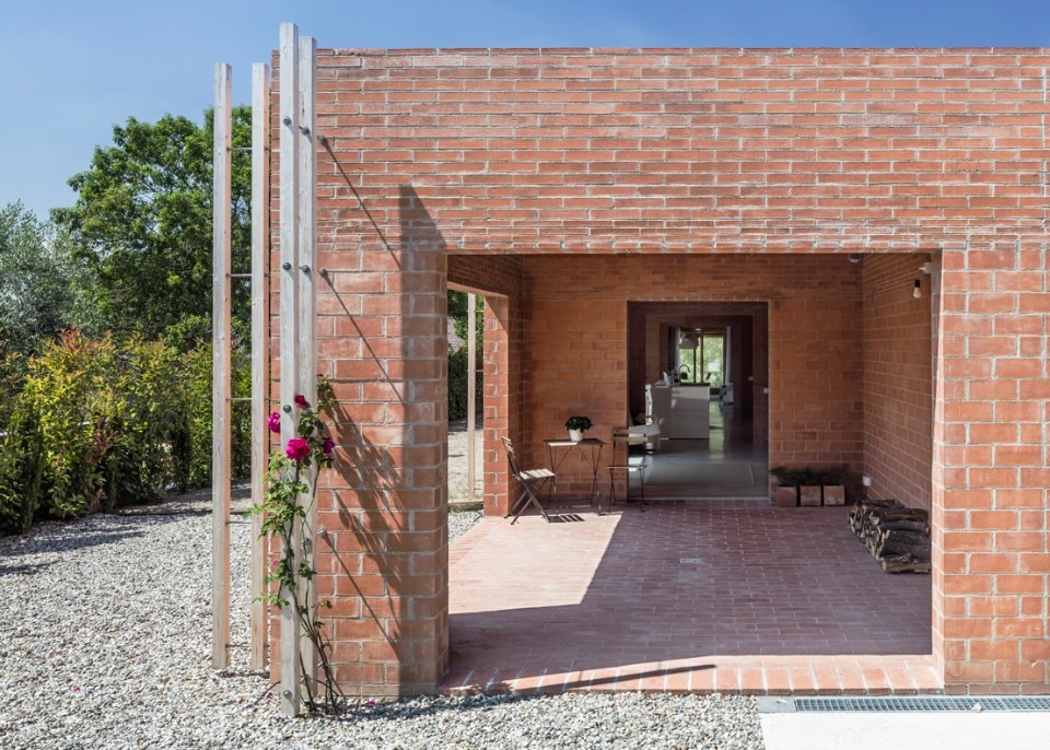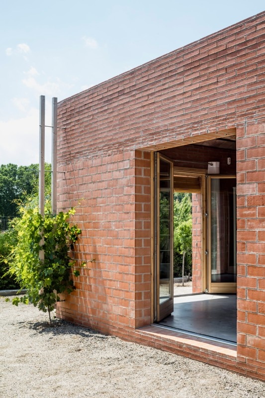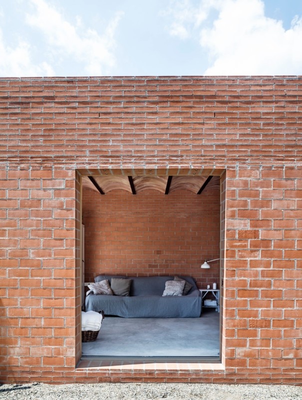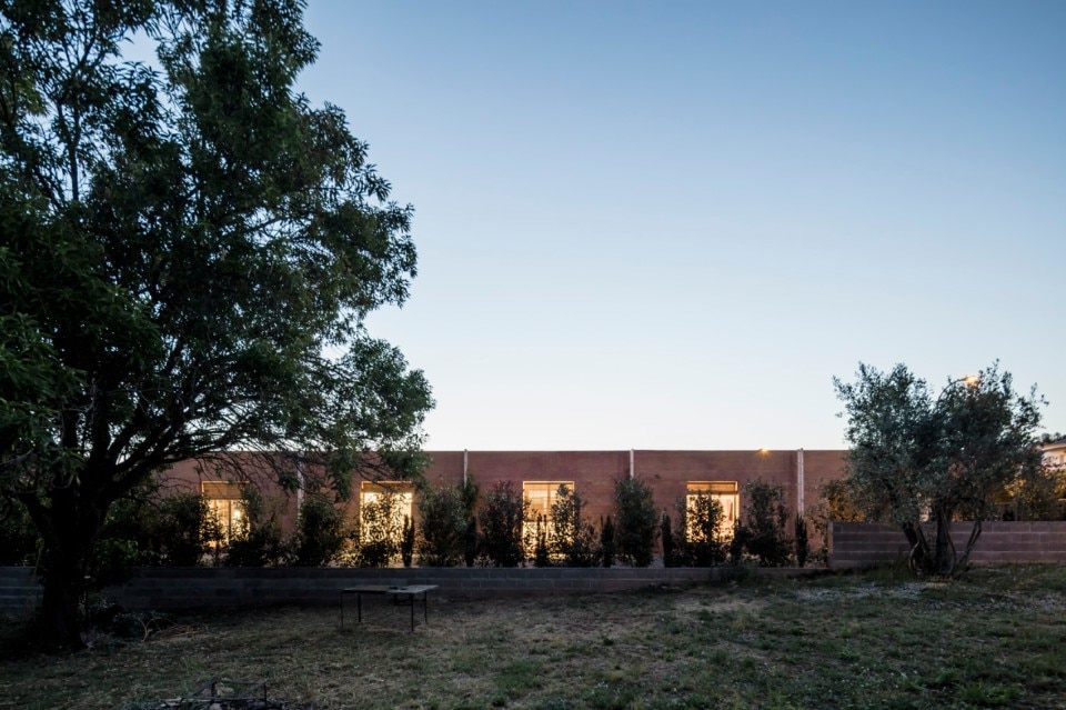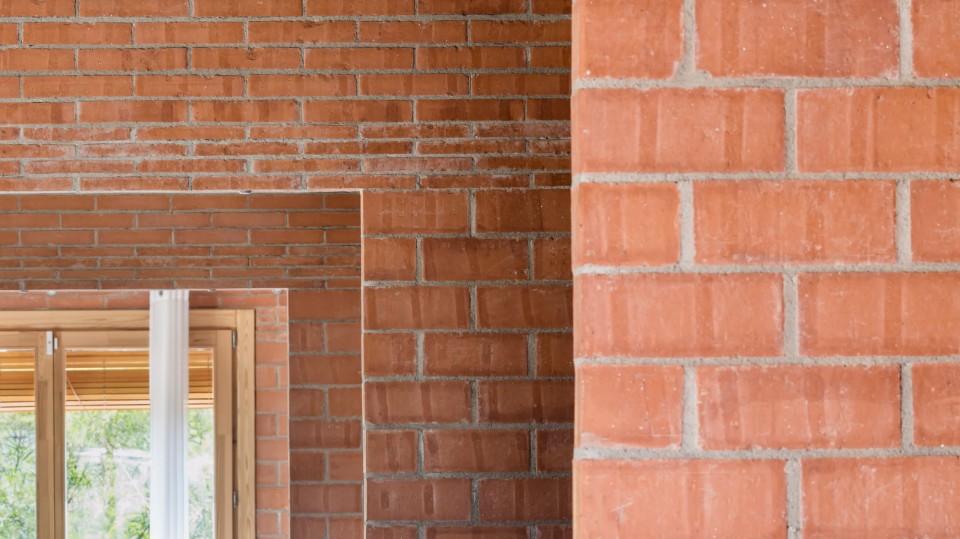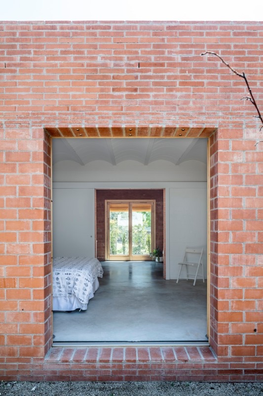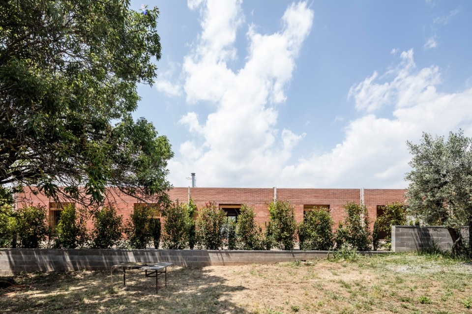 Le funzioni della casa di mattoni sono distribuite in dieci spazi uguali di 3,5x5,12 m. La versatilità degli ambienti di 18 mq e le loro relazioni offrono, sorprendentemente, una grande flessibilità e permettono di immaginare diversi usi nel corso degli anni, con stanze indipendenti o utilizzate come uno spazio unico. L’architettura è minima ed essenziale, evitando gli elementi superflui. La casa è un’infrastruttura in cui gli abitanti possono scegliere il modo migliore di appropriarsene. Per proteggere gli ambienti interni dalla luce solare è stata pensato un sistema di vegetazione che crea un soglia d’ingresso. Il verde riduce l’impatto visivo della costruzione che col tempo si fonderà con il giardino.